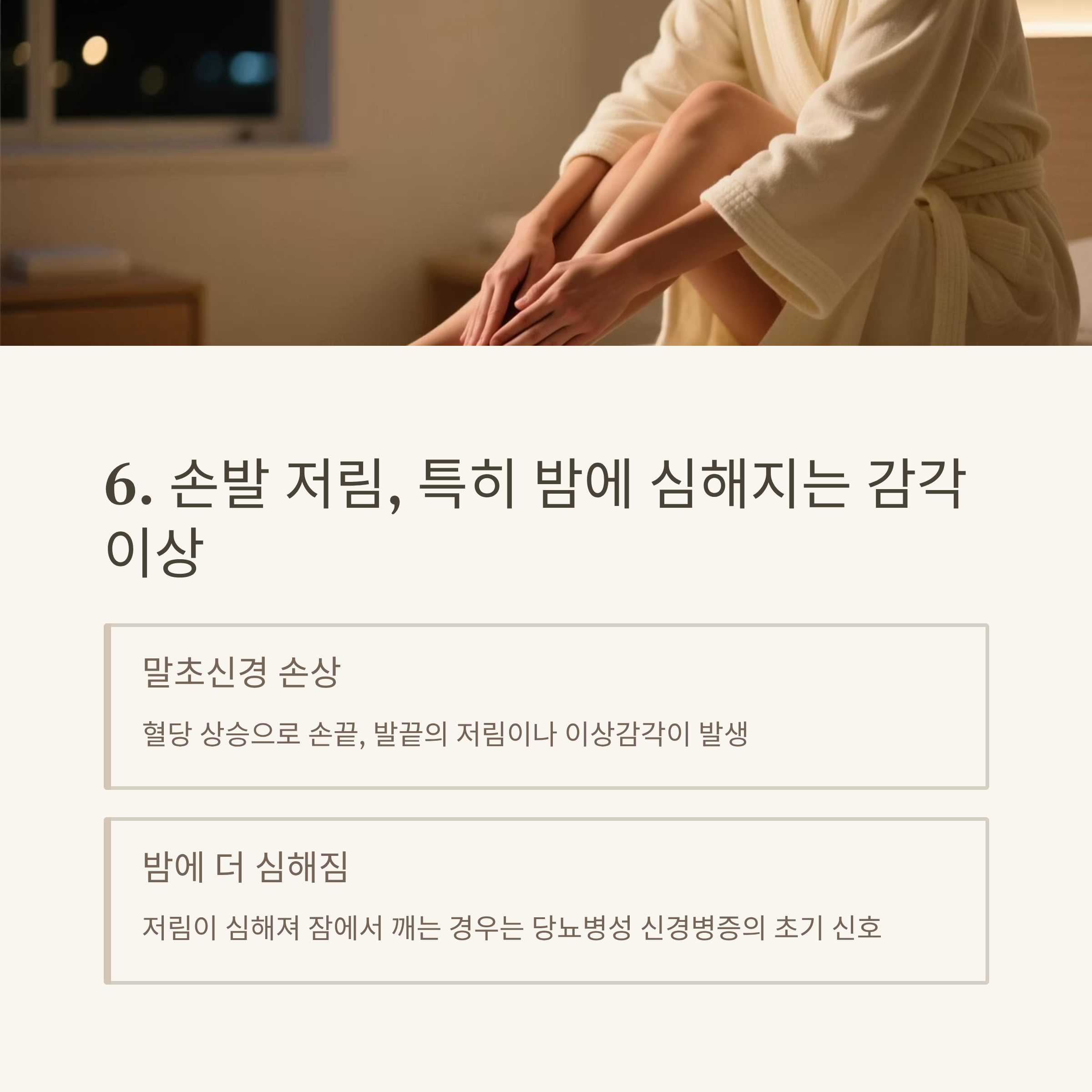 이런 증상은 당뇨병성 신경병증의 초기 신호일 수 있습니다.