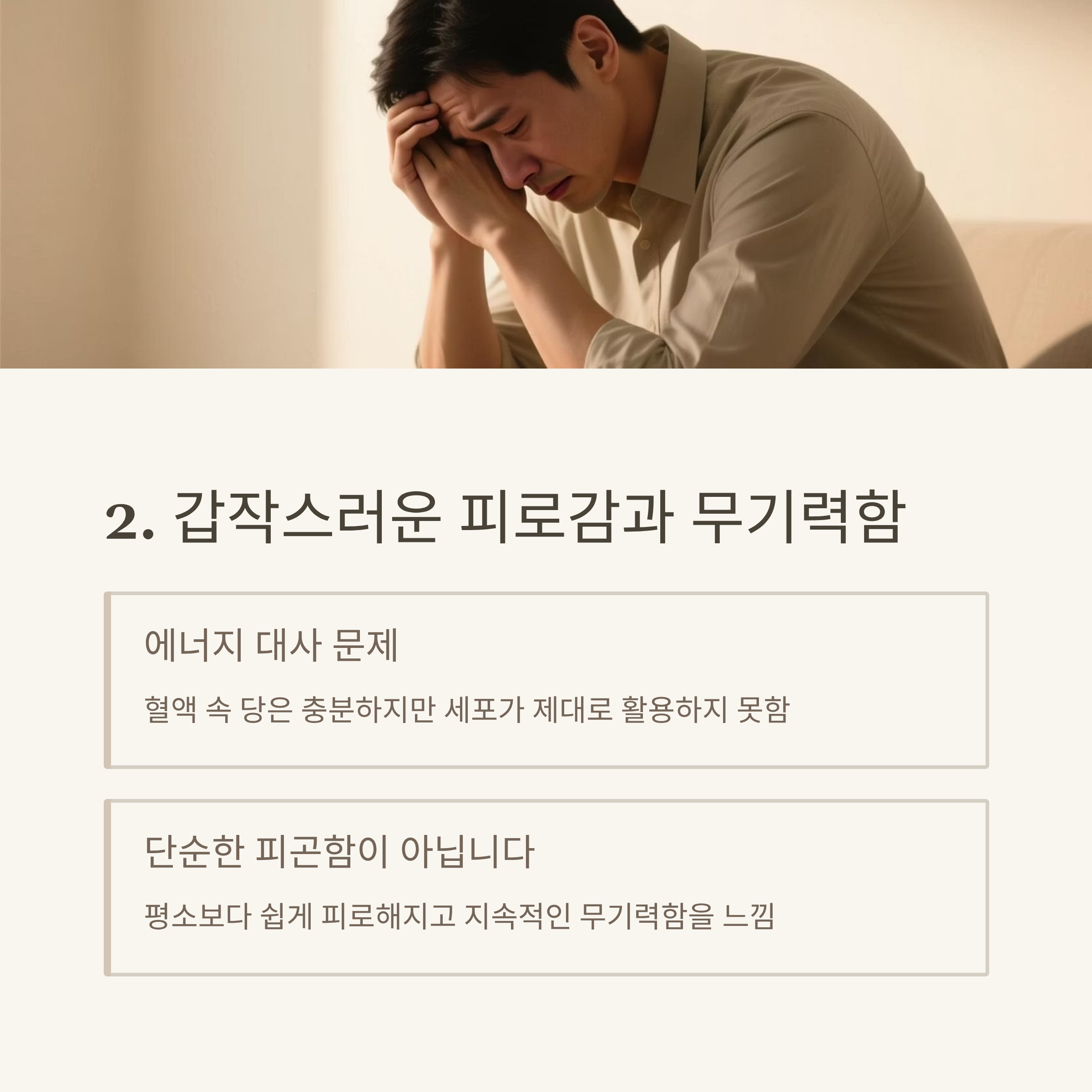 이것은 단순한 피곤함이 아니라 혈당 이상으로 인한 에너지 대사 문제일 수 있습니다.