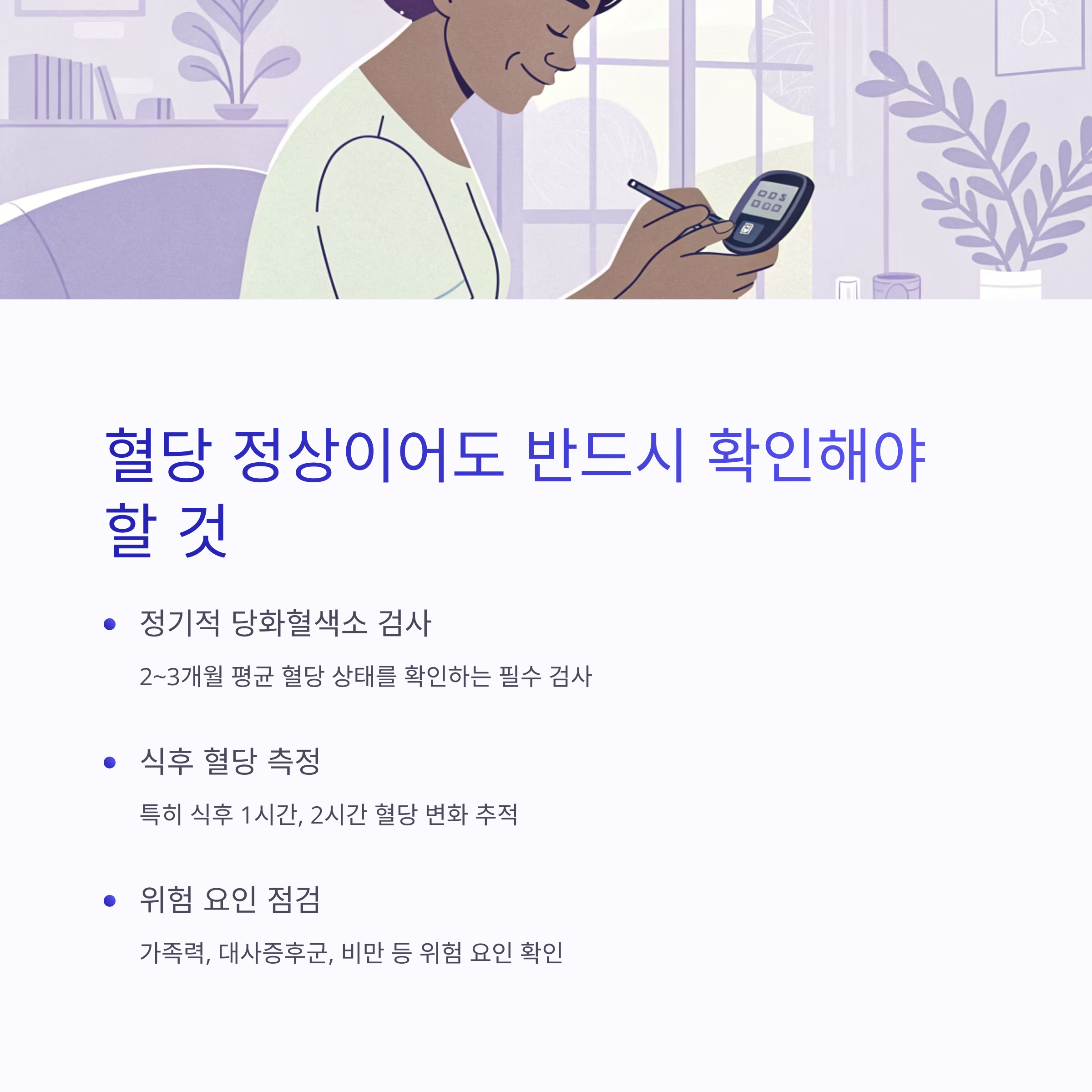 혈당이 정상이라고 해서 무조건 안심해선 안 됩니다. 수치의 미세한 변화, 혈당 스파이크, 당화혈색소 등 다양한 지표를 함께 종합적으로 살펴야 진짜 건강을 지킬 수 있습니다. 꾸준한 자기 관리와 정기적인 검진이 당뇨병과 그 합병증을 막는 가장 확실한 방법입니다.