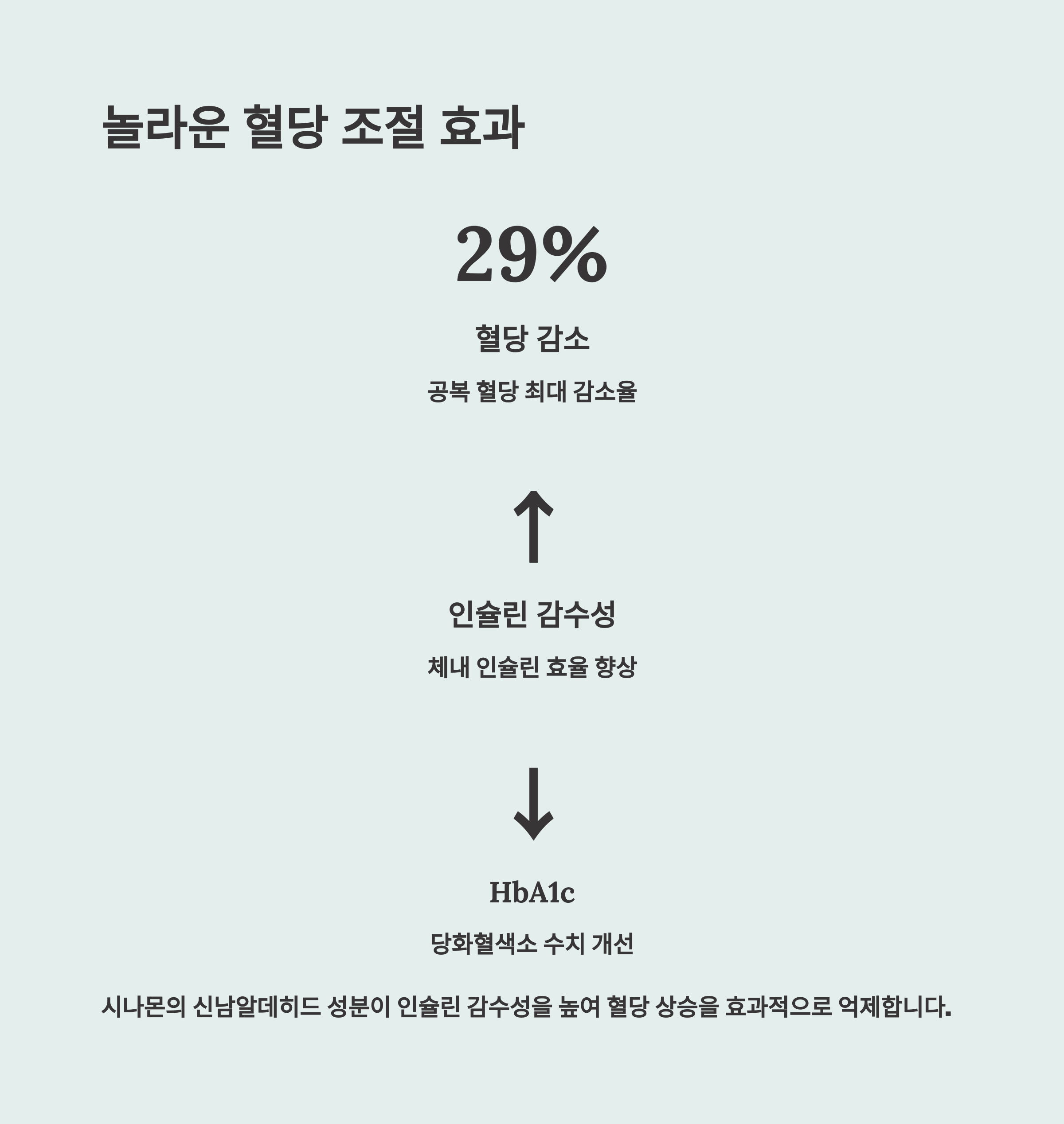 | 시나몬의 주요 성분 | 신남알데히드가 혈당 조절에 기여합니다. |