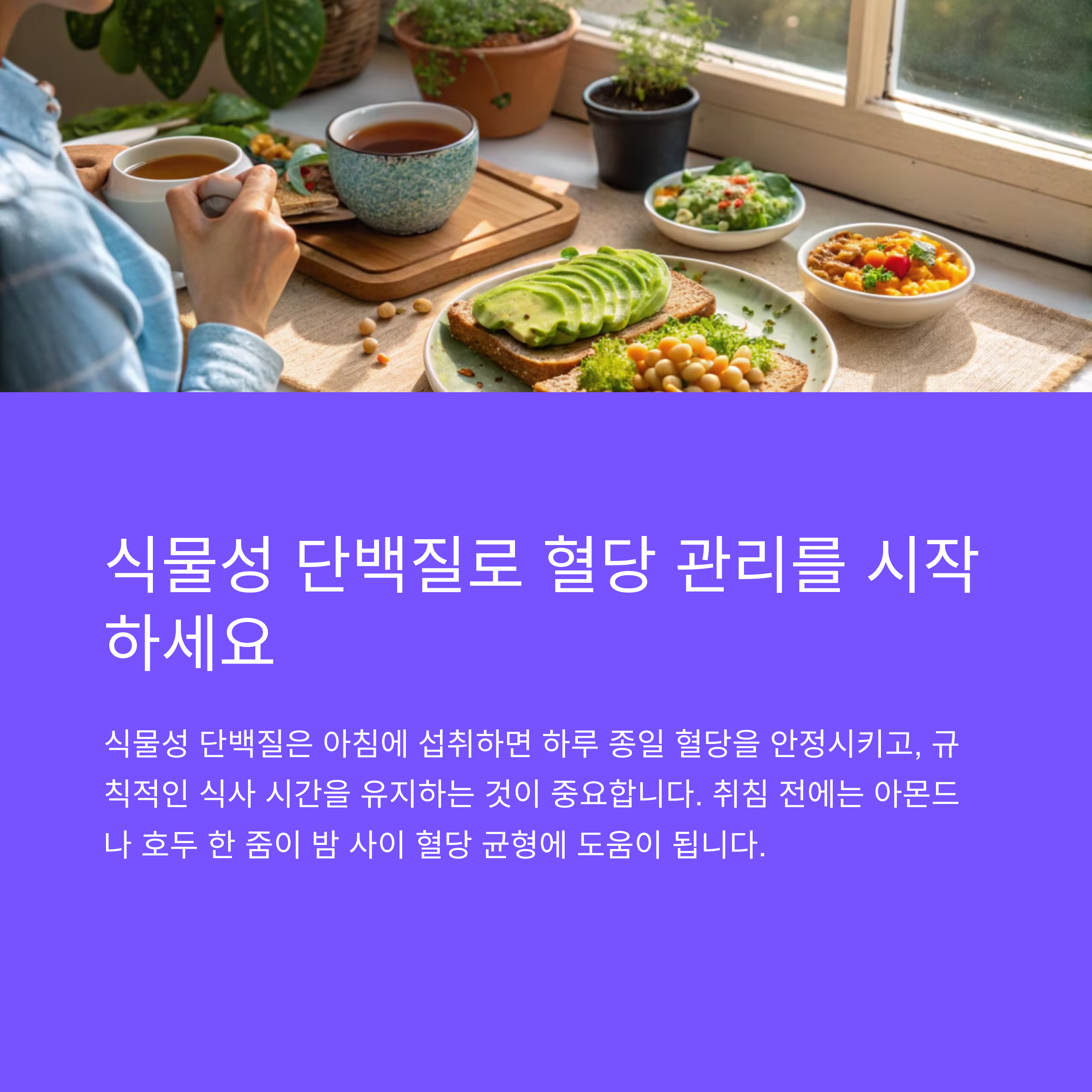 | 식물성 단백질의 혈당 완화 효과 | 소화 속도 조절과 혈당 급등 억제로 안정성 제공 |