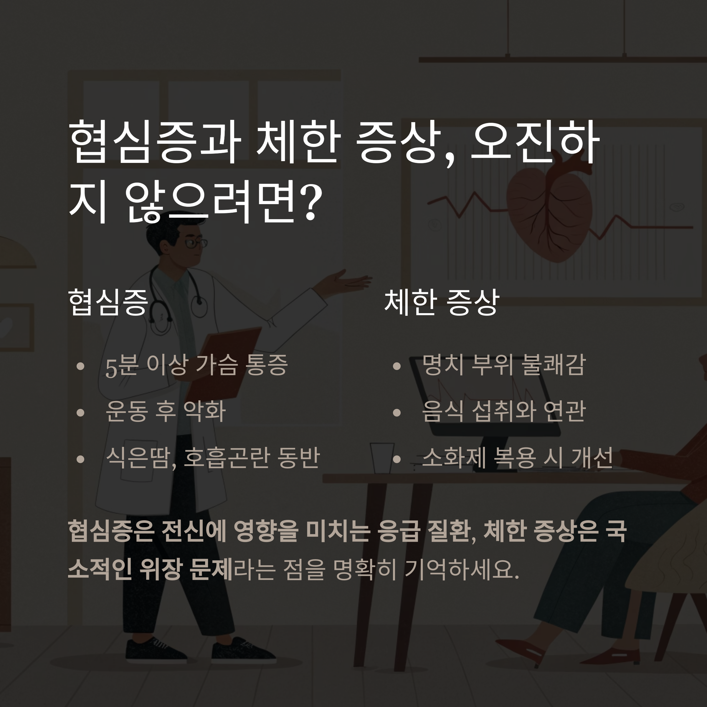 협심증과 체한 증상은 유사하게 느껴질 수 있지만, 그 의미는 생사를 가를 만큼 다릅니다