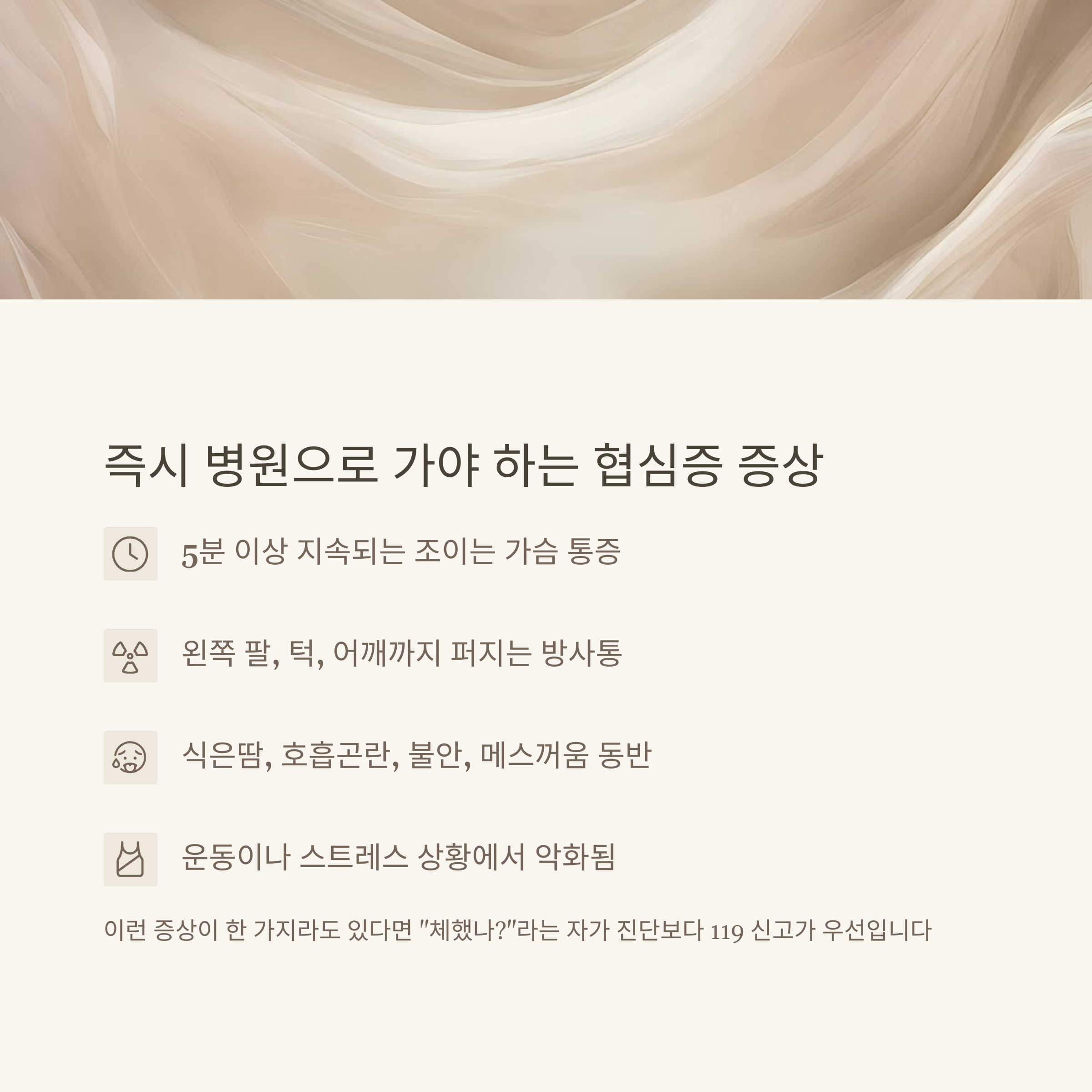 심근경색으로 발전할 수 있으니 즉시 병원 진료가 필요합니다