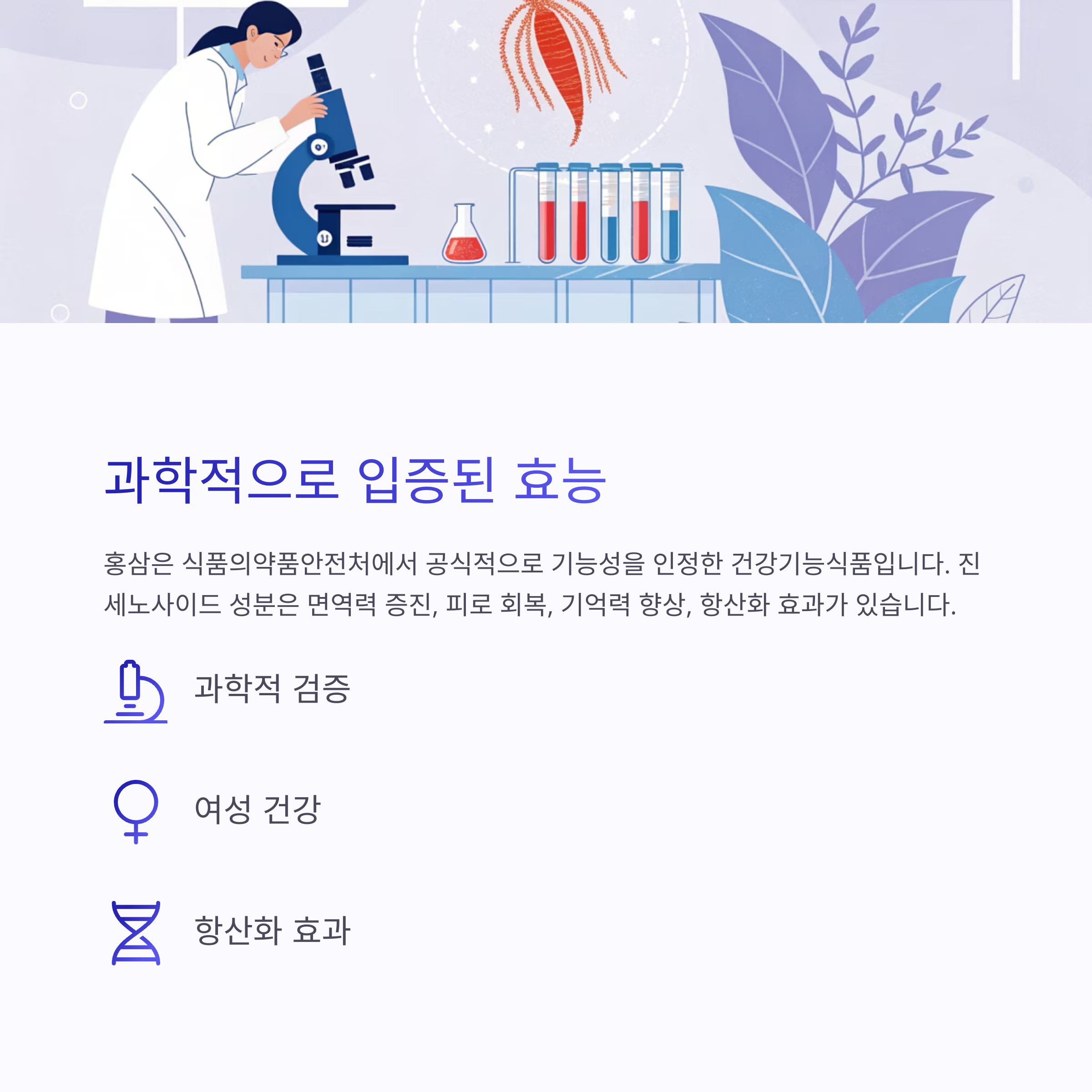 홍삼은 다양한 기능성이 과학적으로 입증된 건강기능식품입니다.