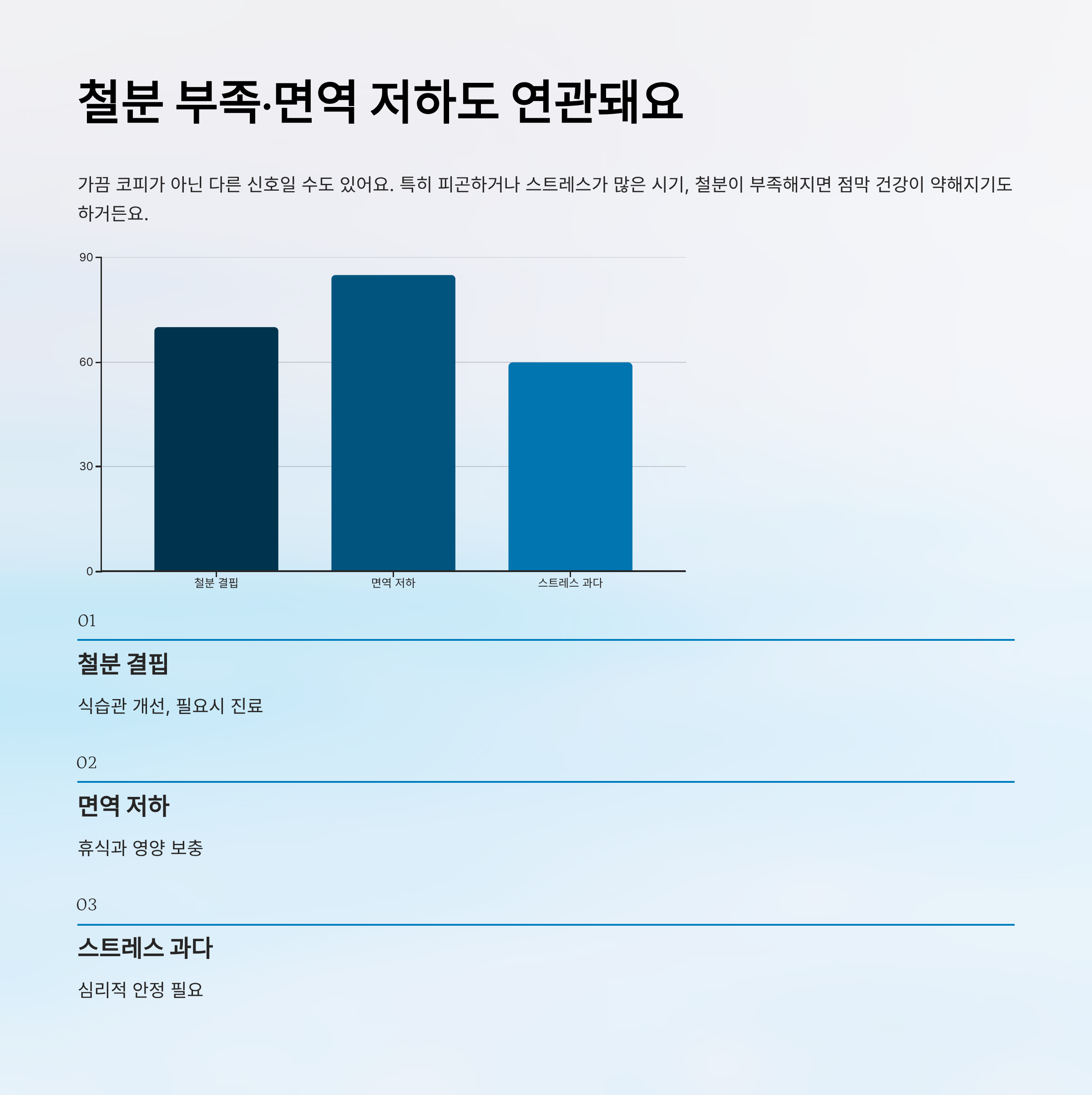 철분 부족과 면역 저하도 코피와 연관될 수 있어요