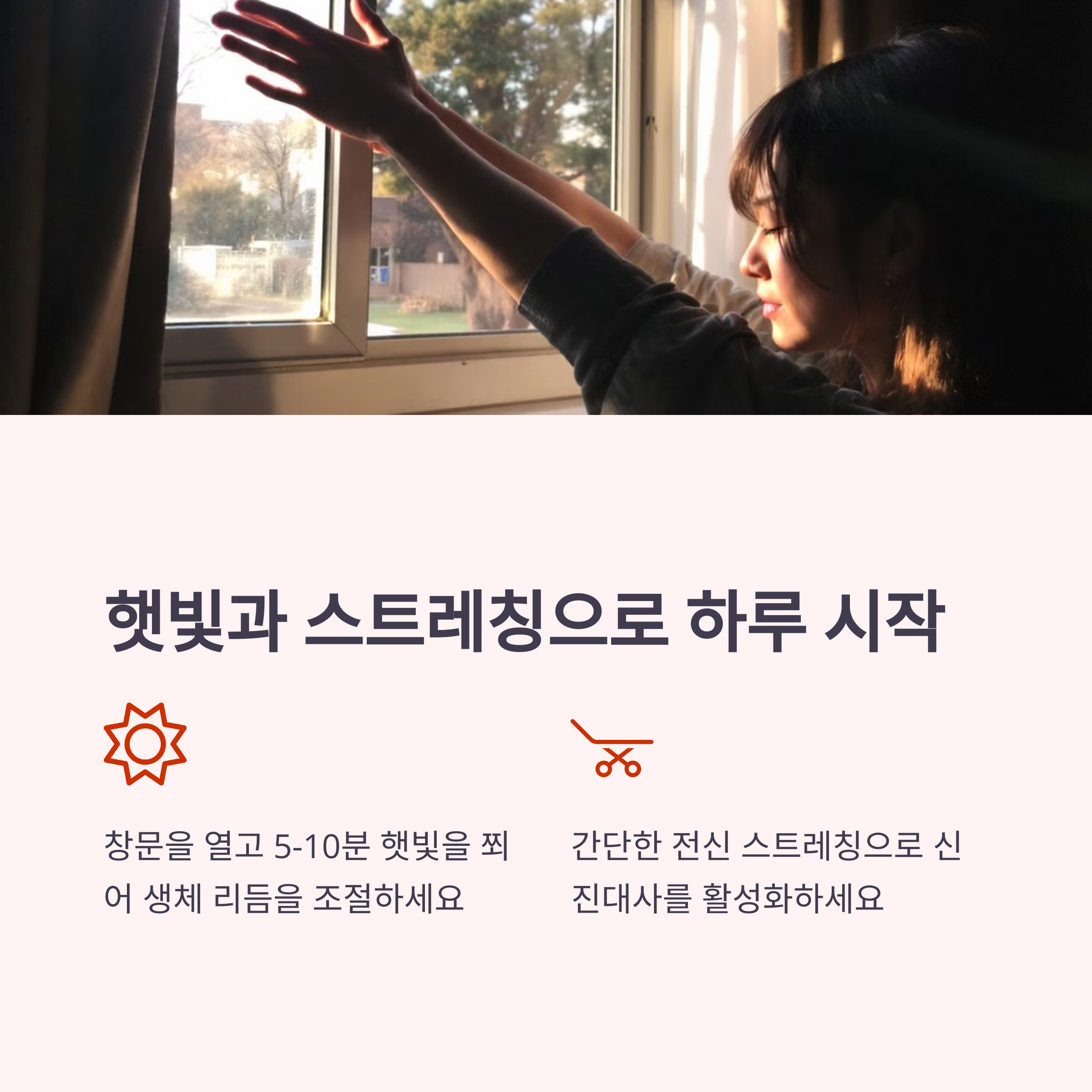 | 기상 후 30분 | 물 한 잔 마시고 가벼운 스트레칭을 해보세요. |