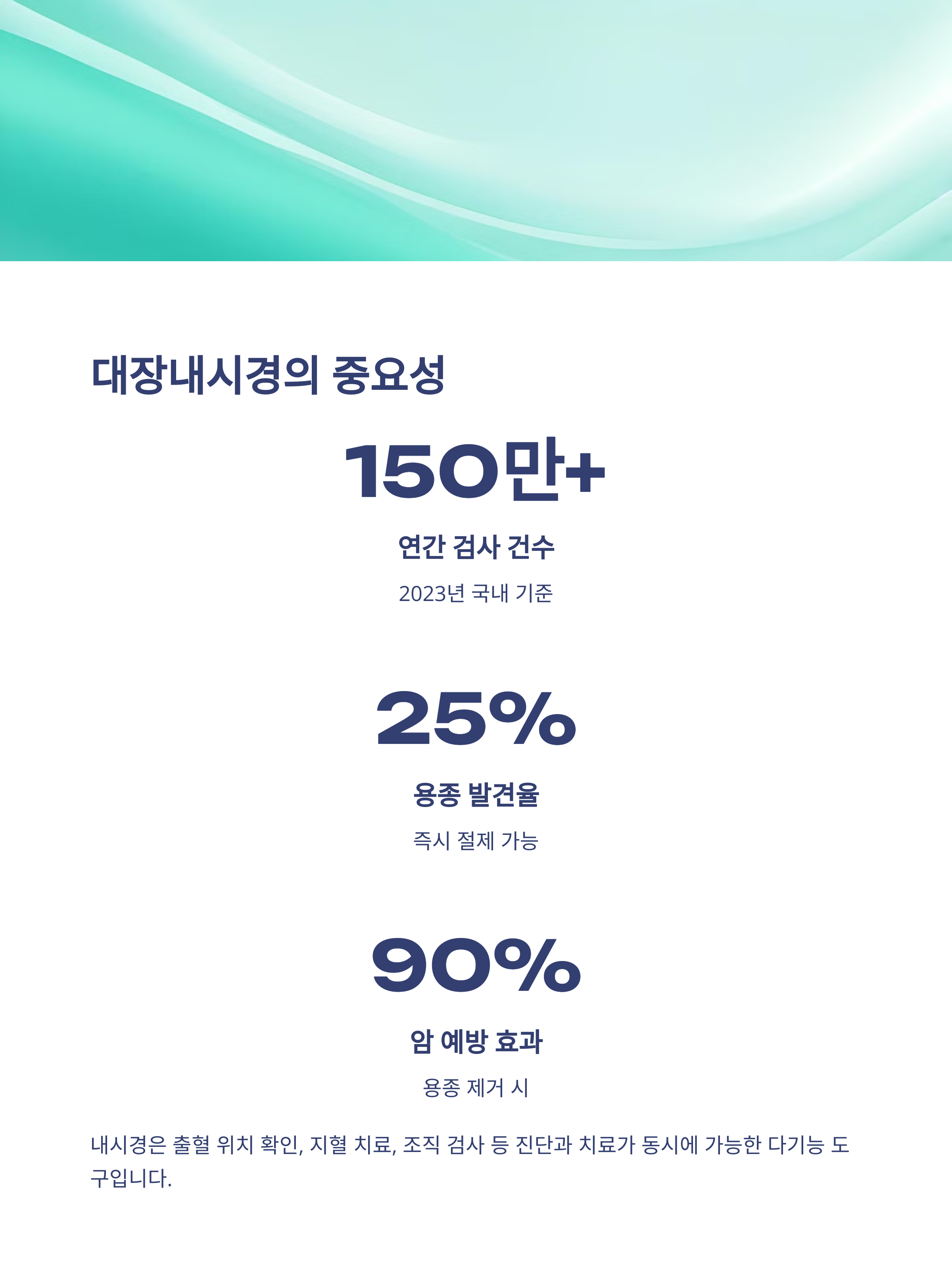 - 2023년 기준, 국내 연간 대장내시경 건수: 약 150만 건 이상