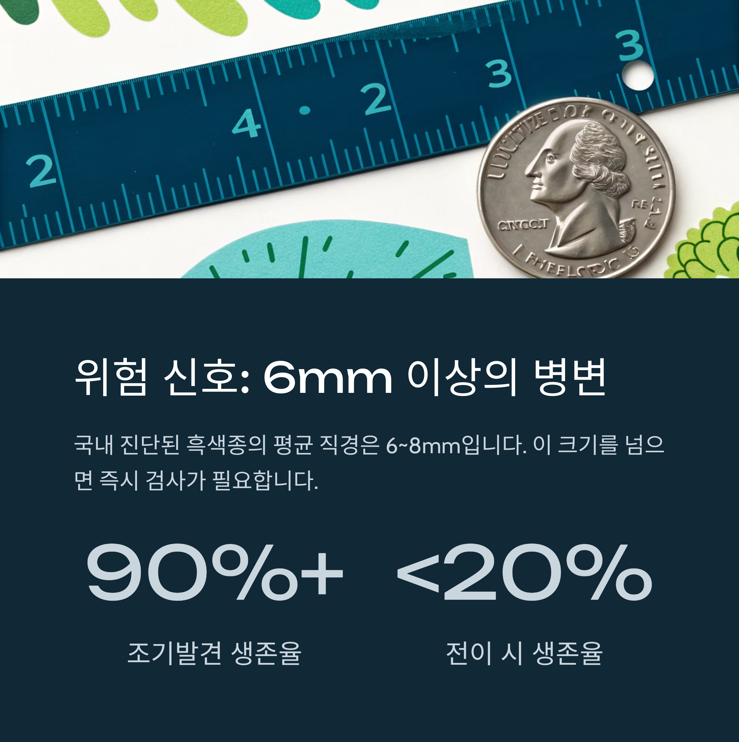 대한피부과학회에 따르면, 국내에서 진단된 흑색종의 평균 직경은 6mm에서 8mm입니다.