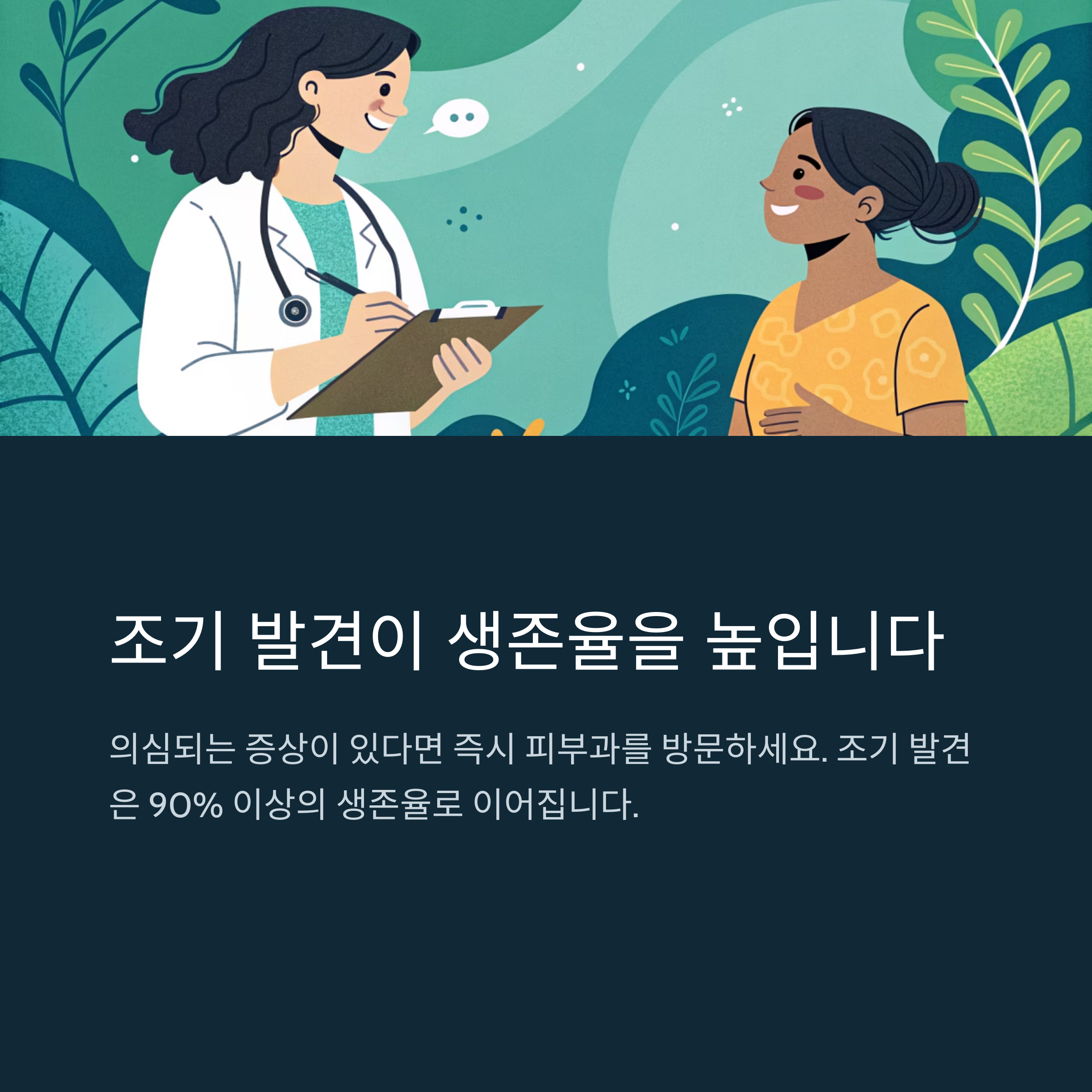 | 생존율 | 멍은 생존과 무관 | 조기발견 시 90% 이상, 전이 시 20% 이하 |