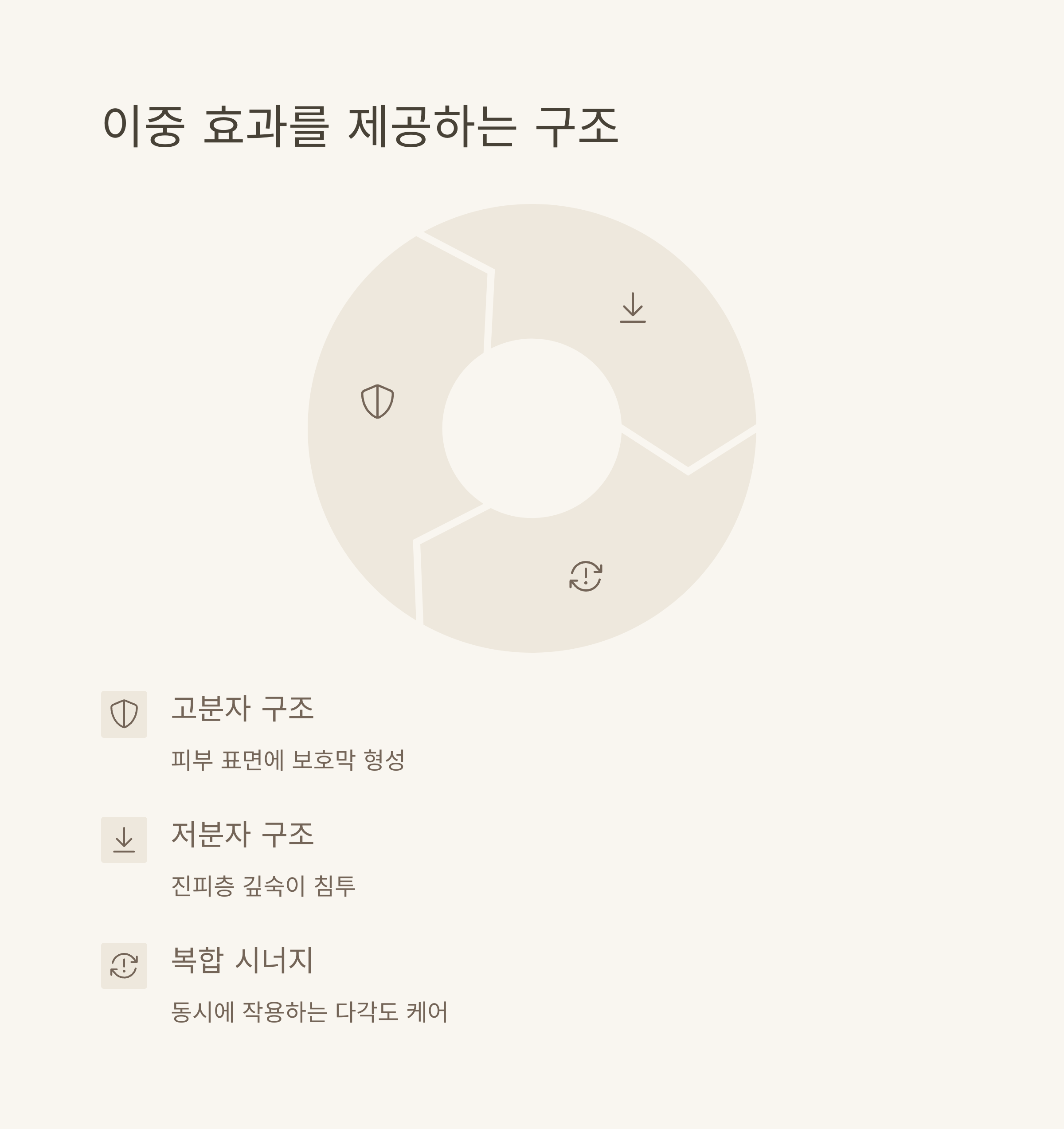 고분자는 피부 표면 보습막 형성에, 저분자는 진피층 침투에 유리합니다. 두 성분의 복합 사용이 시너지 효과를 극대화합니다.