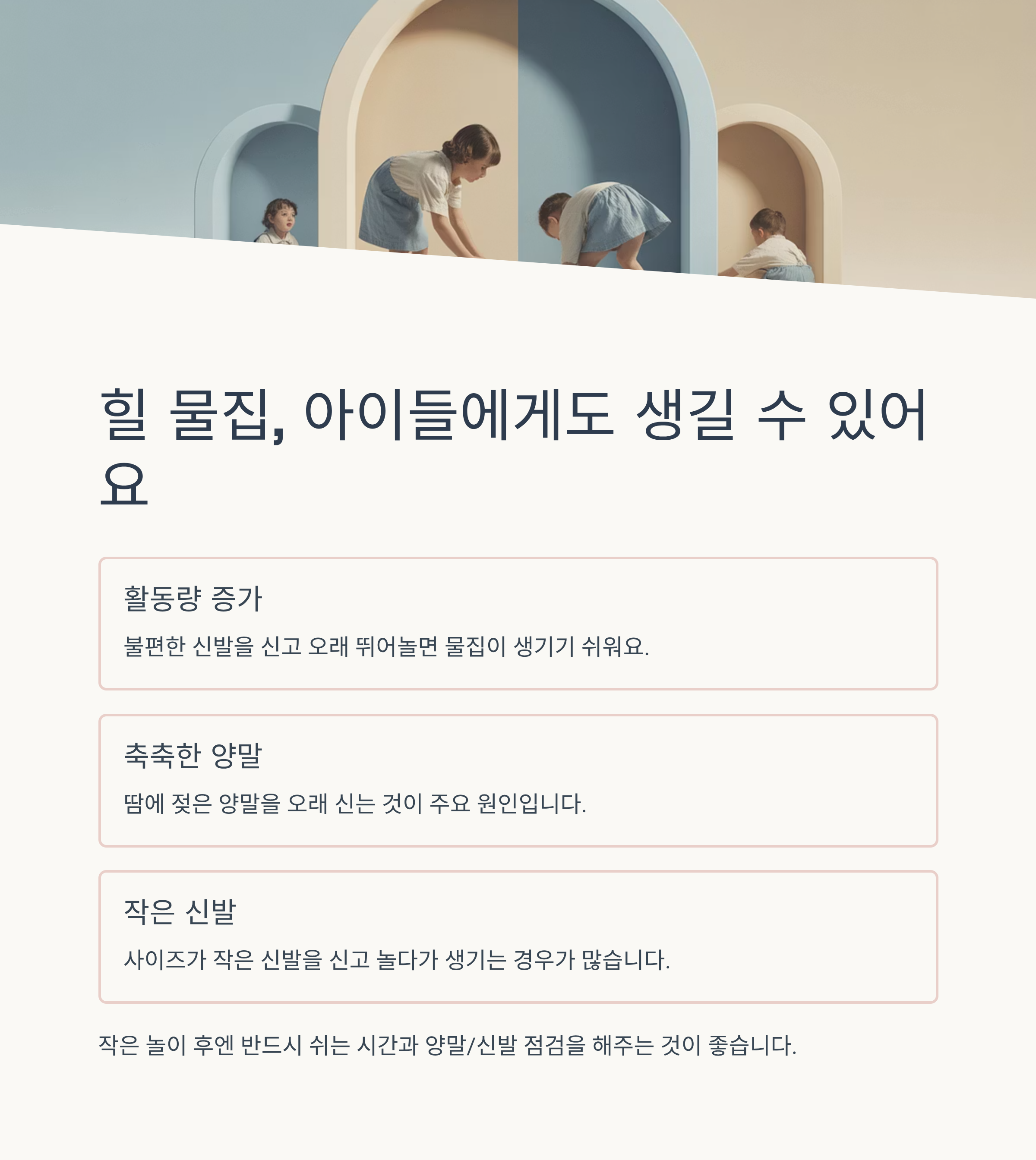 아이들이 활동량이 많아지면서 불편한 신발을 신고 오래 뛰어놀면 물집이 생기기 쉬워요.