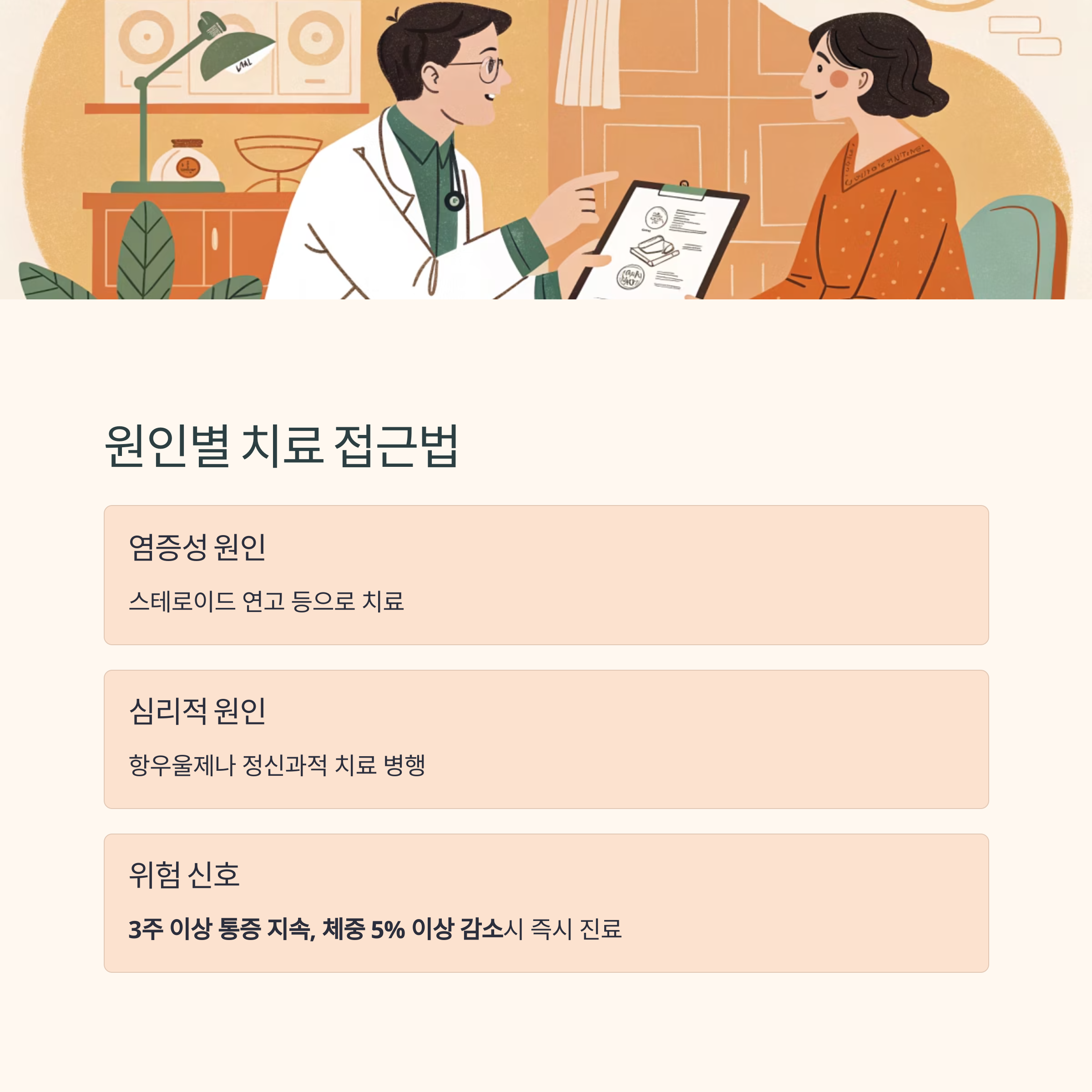 심리적 원인은 항우울제나 정신과적 치료를 병행합니다.