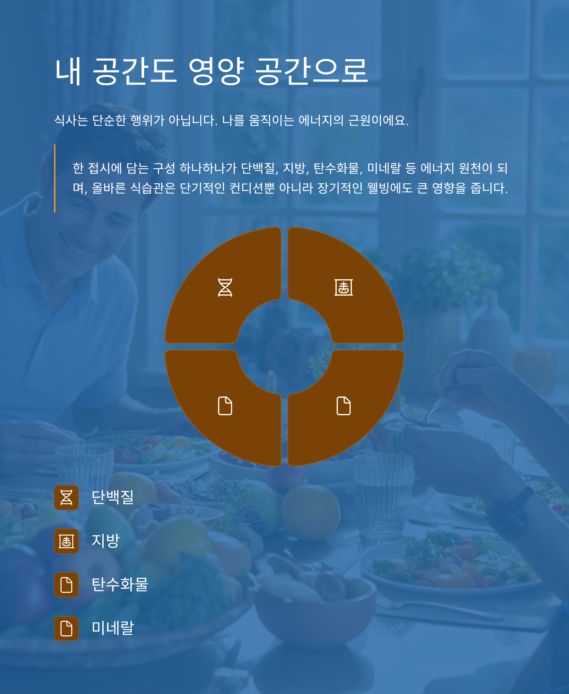 식사는 단순한 행위가 아닙니다. 나를 움직이는 에너지의 근원이에요.