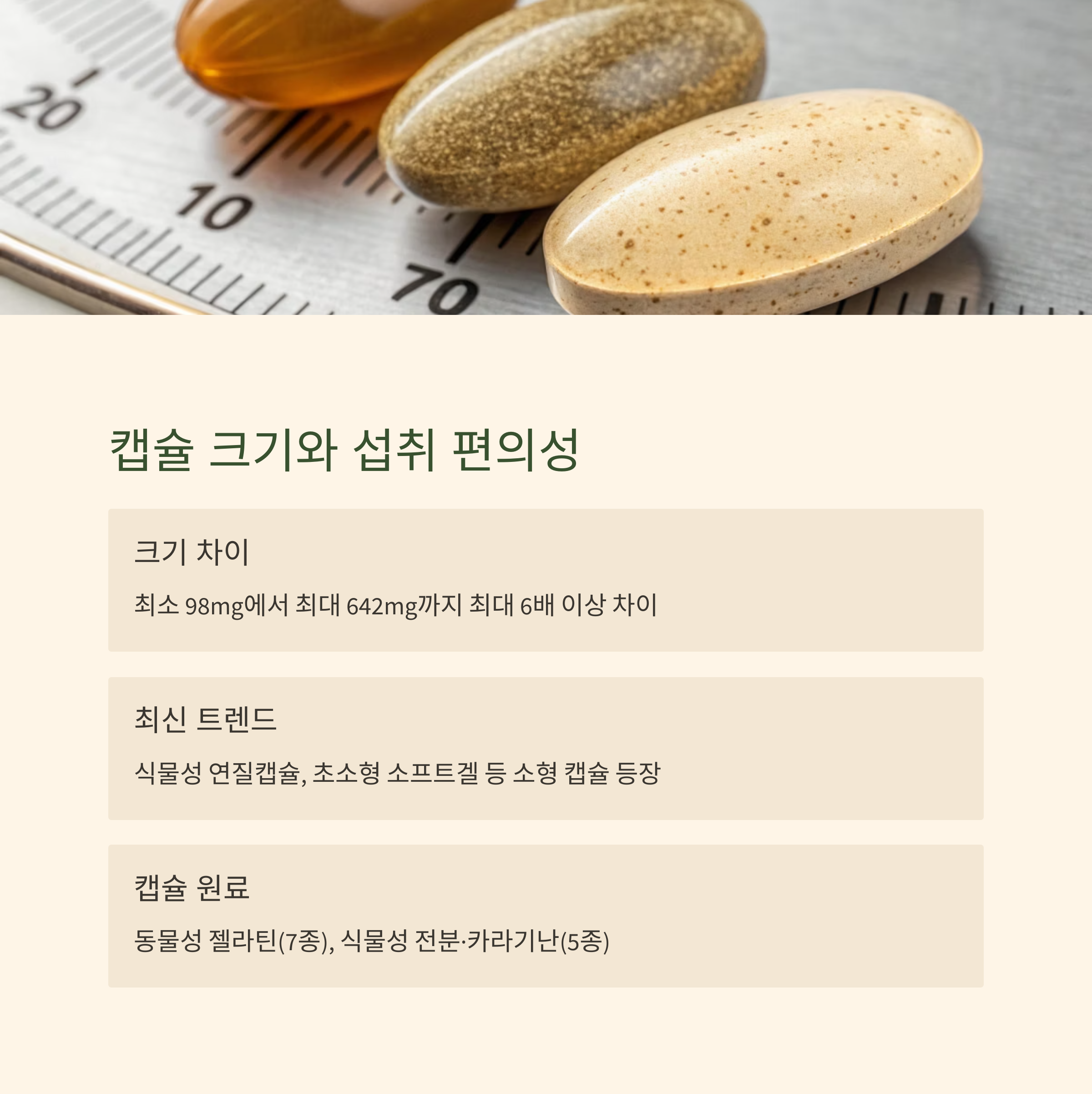 핵심 : 캡슐 크기와 재질까지 고려해 섭취의 지속성을 높이세요.