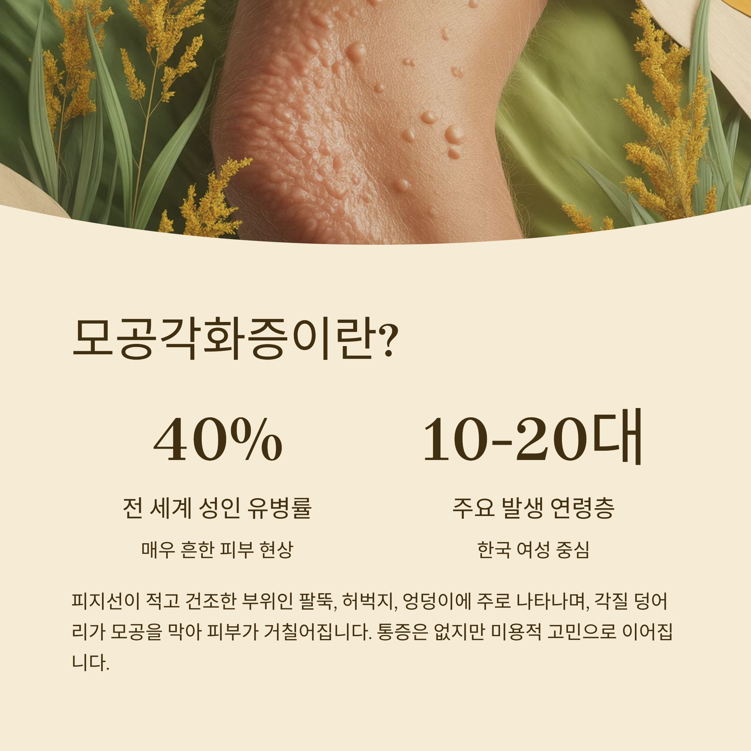 작은 각질 덩어리들이 모공을 막으면서 피부 표면이 거칠고 오돌토돌해지며, 때로는 붉은 반점이 동반되기도 하죠. 통증은 거의 없지만 미용적인 고민으로 이어져, 많은 사람들이 홈케어 또는 피부과 치료를 병행하고 있습니다.