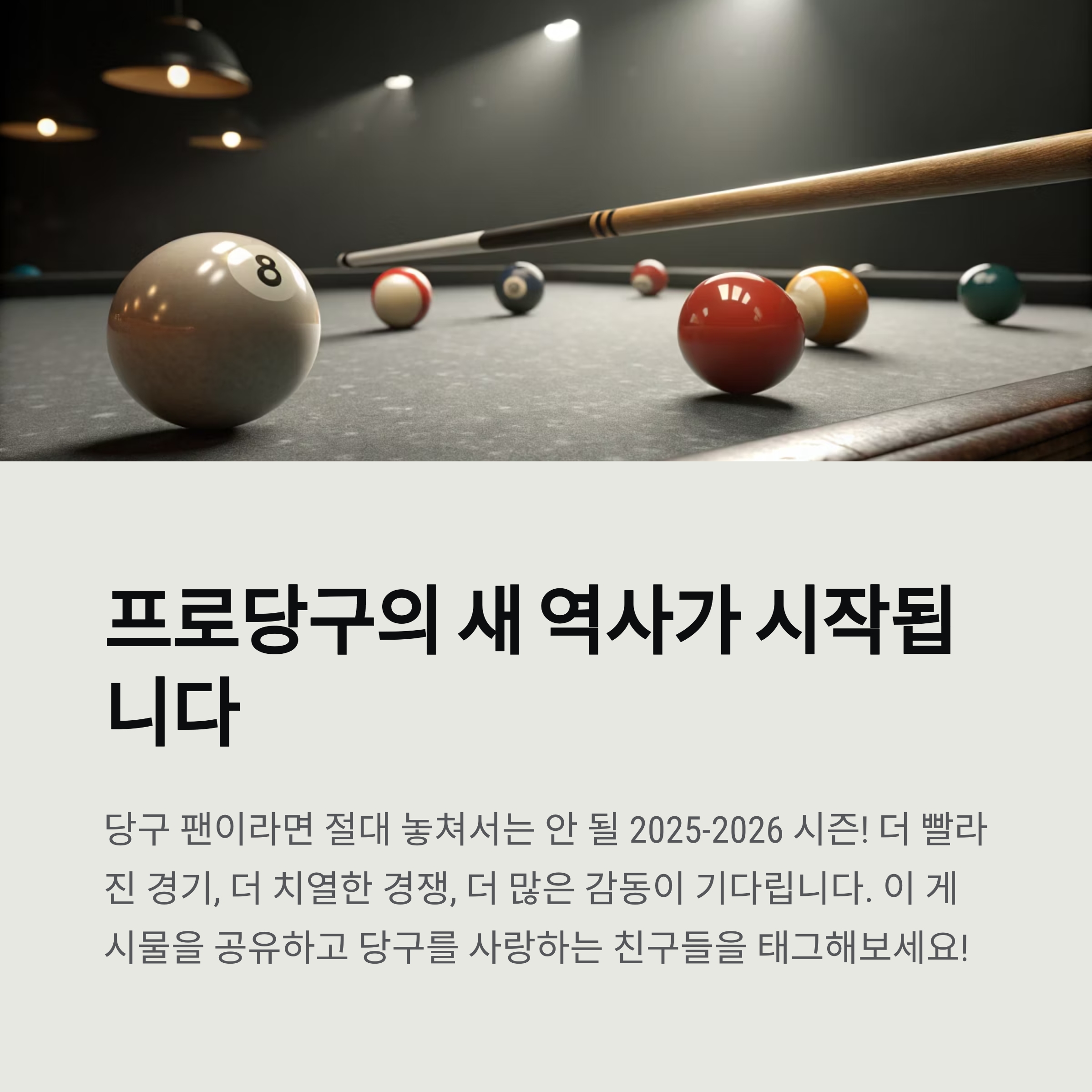 당구 팬이라면 절대 놓쳐서는 안 될 2025-2026 시즌의 시작입니다
