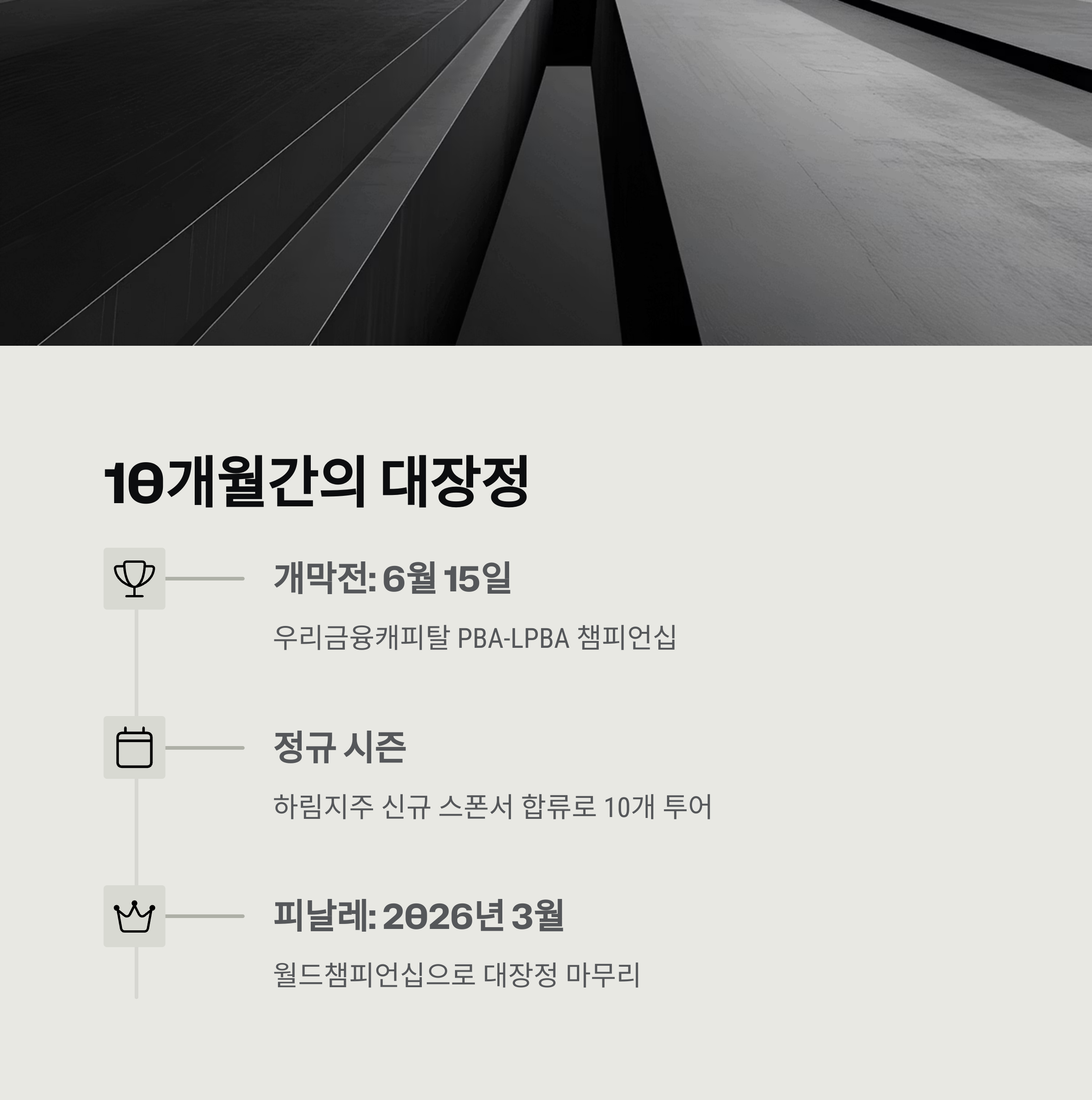 2025-2026시즌 프로당구 PBA 투어가 6월 15일 ‘우리금융캐피탈 PBA-LPBA 챔피언십’을 시작으로 본격 출범합니다