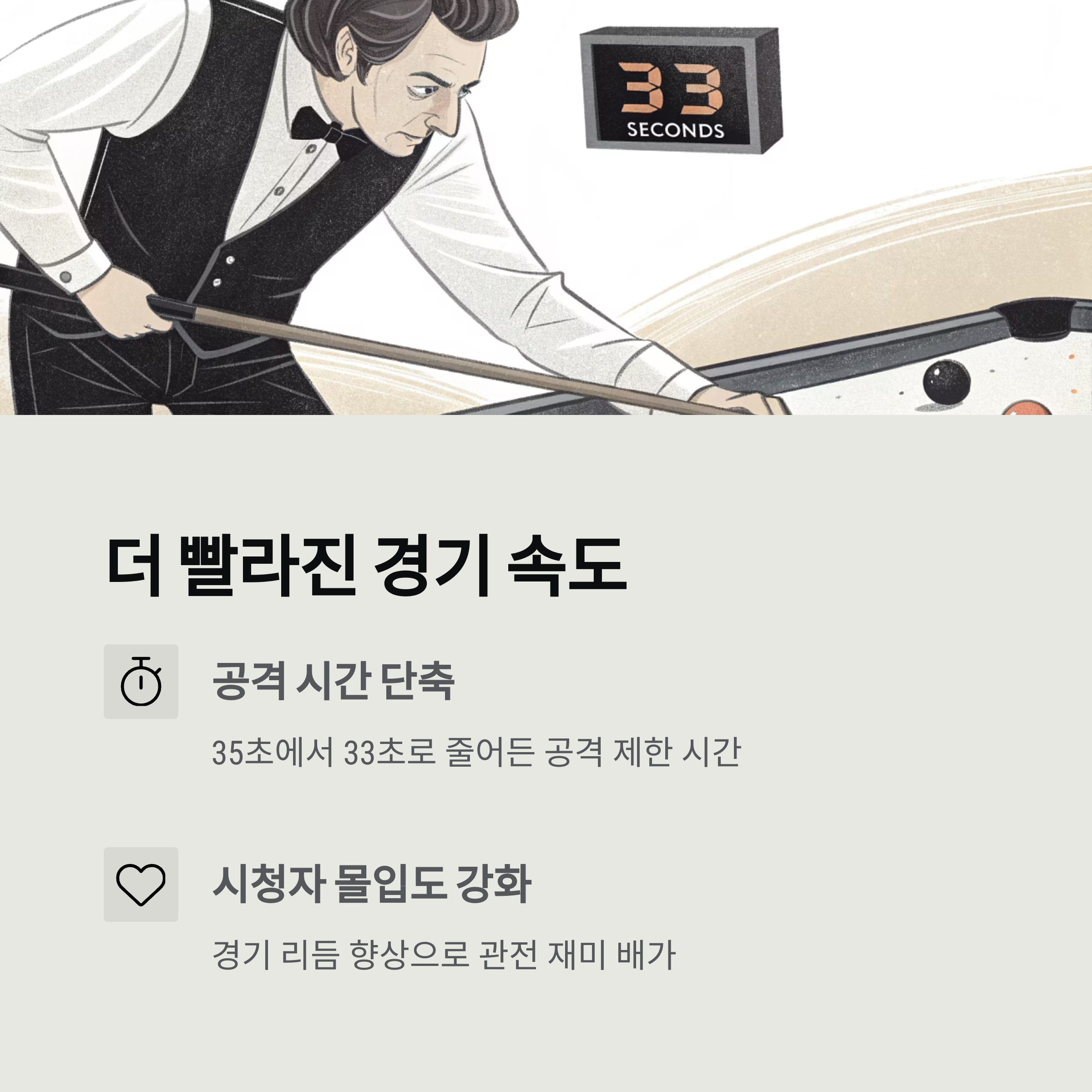 이는 경기의 리듬을 높이고 시청자 몰입도를 강화하기 위한 변화입니다