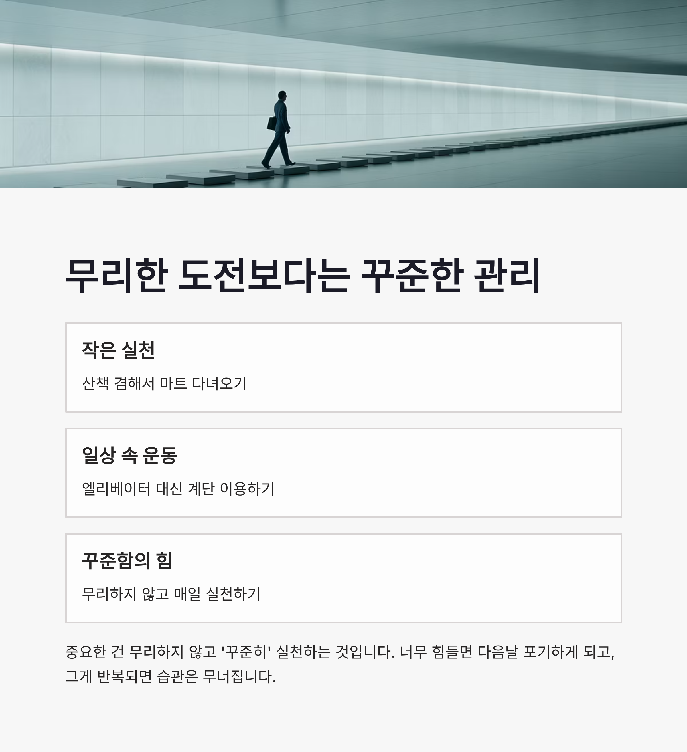 무리한 도전보다는 꾸준한 관리가 핵심입니다