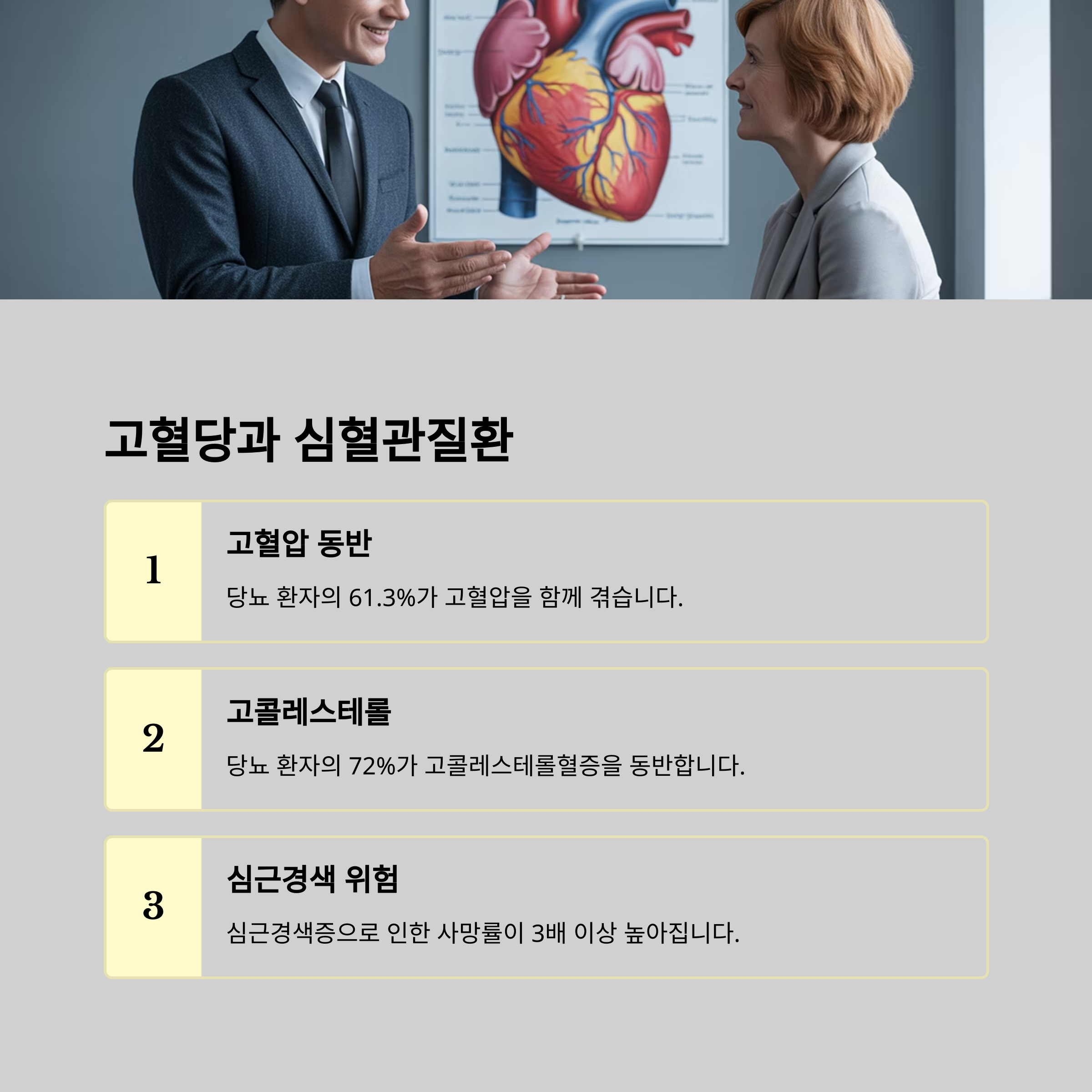국내 조사에 따르면 당뇨 환자의 61.3%는 고혈압,