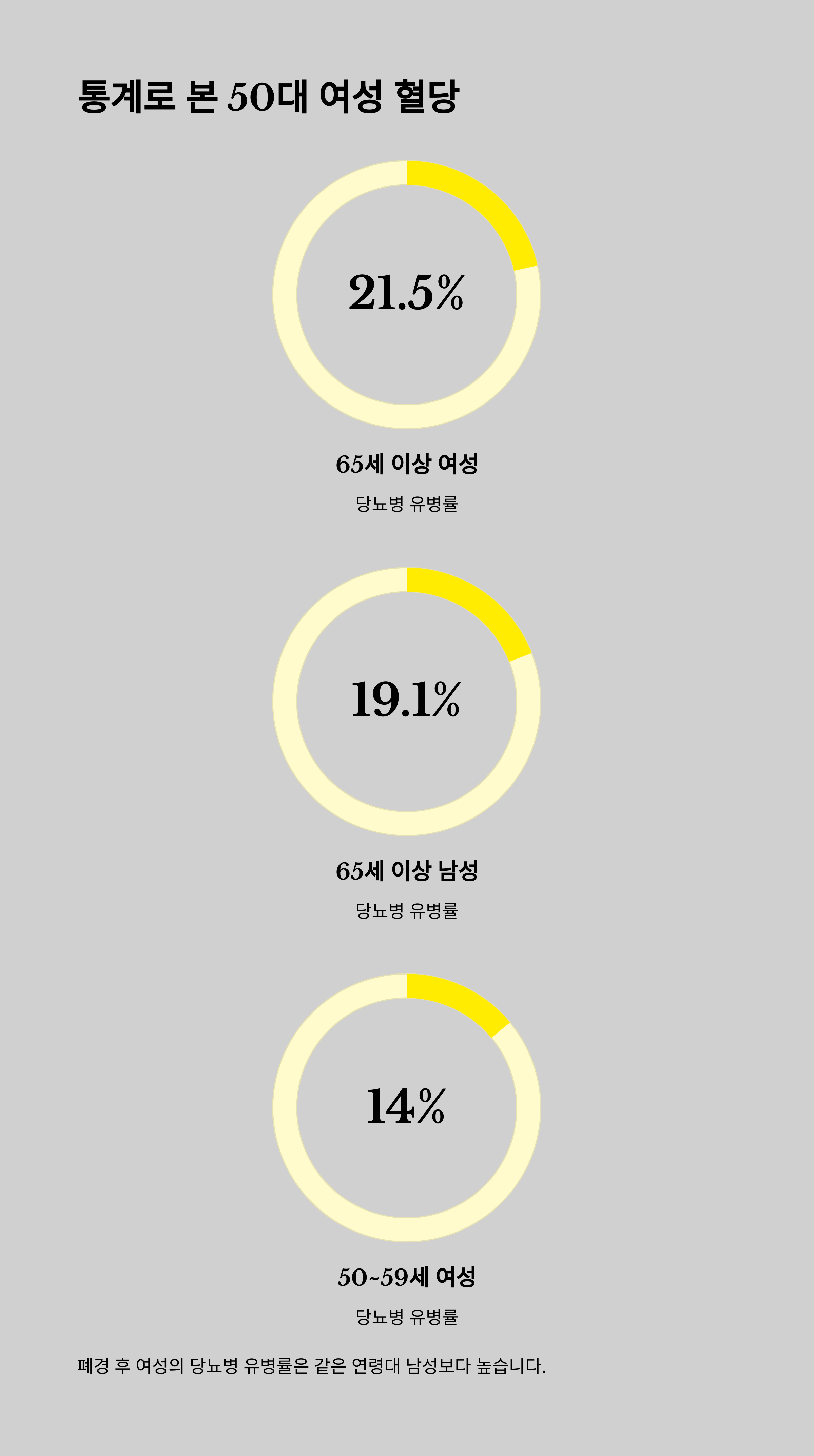 50대 여성은 폐경을 기점으로 혈당 수치가 급증하는 양상을 보입니다.