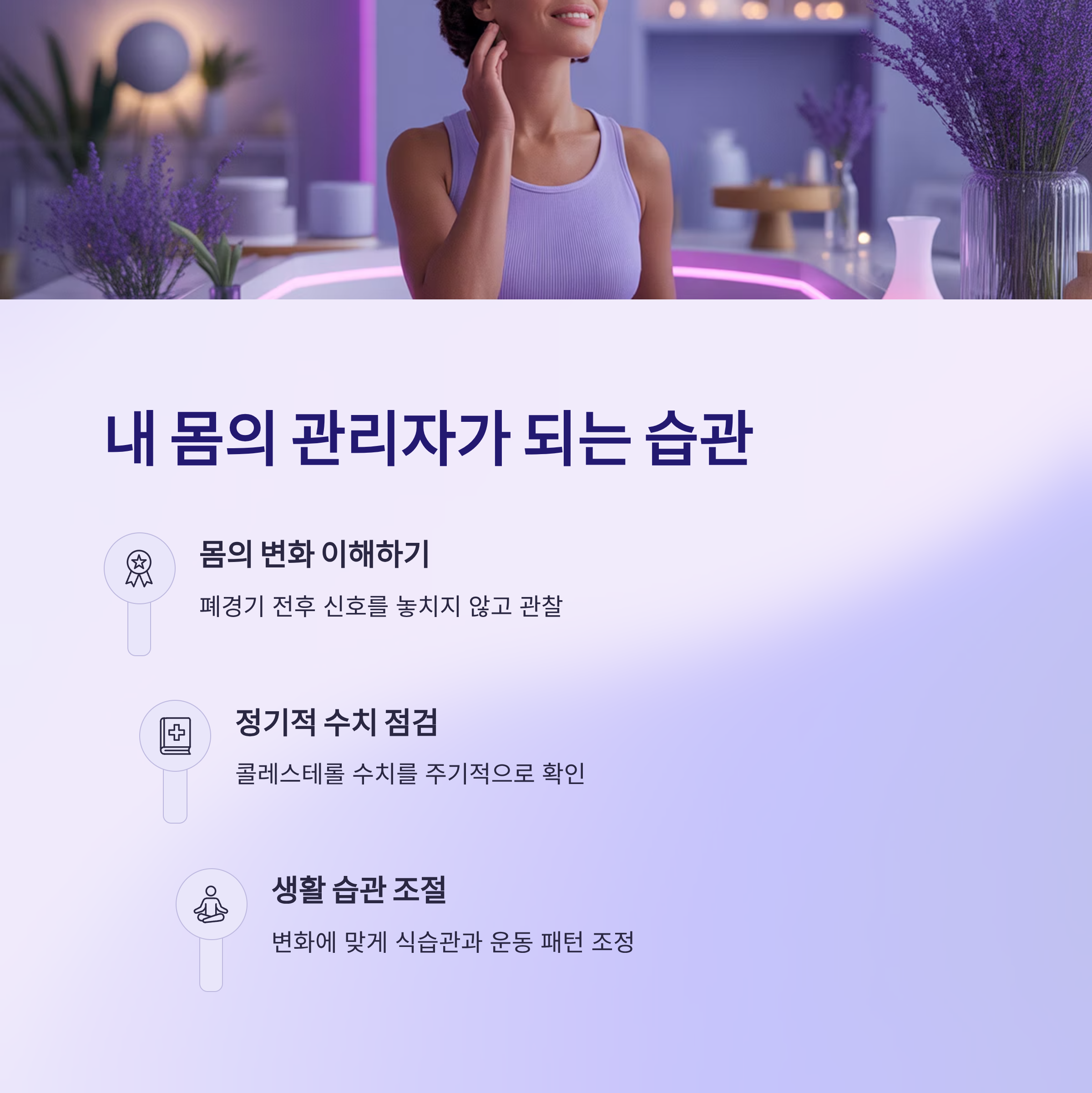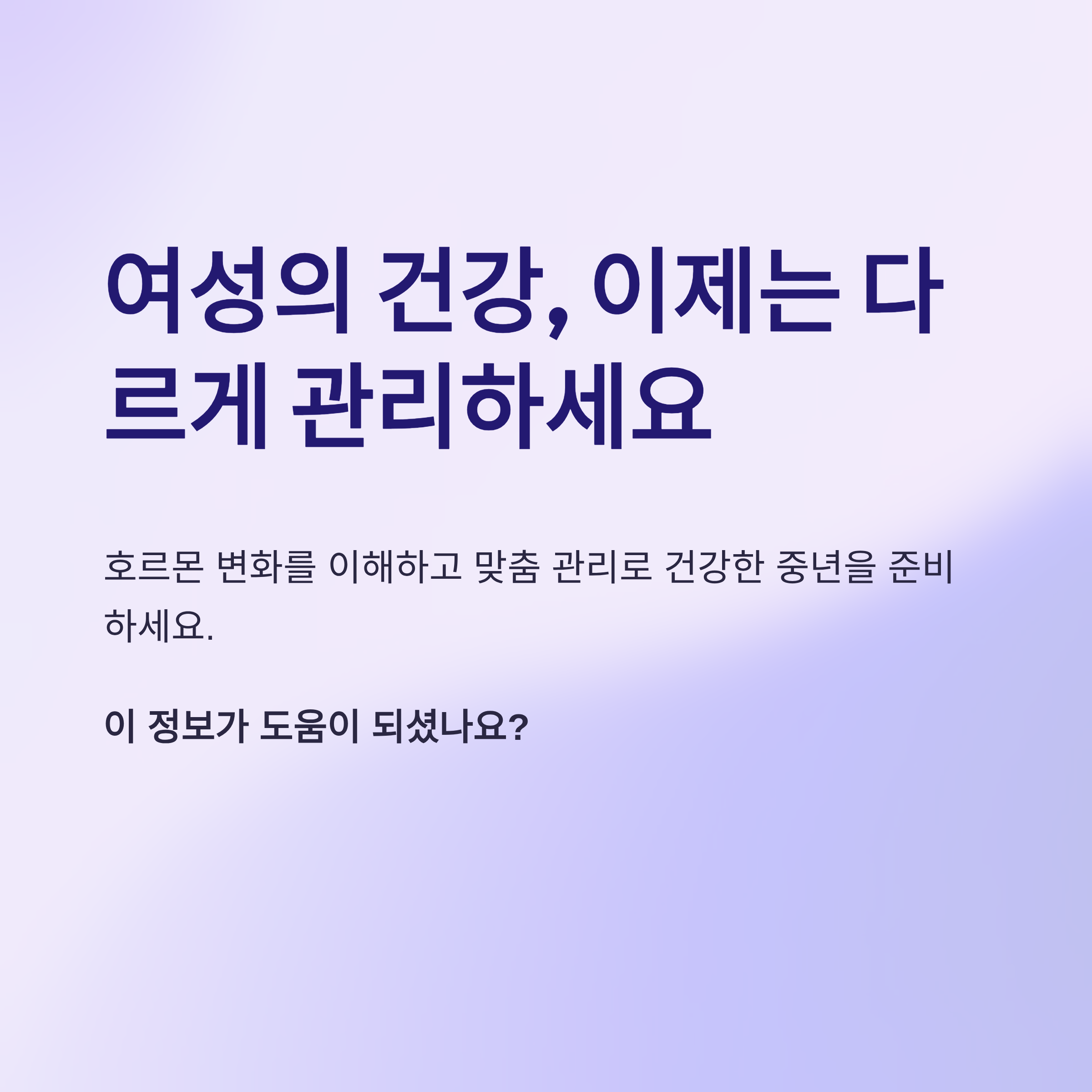 건강은 전문가만 관리하는 게 아닙니다. 여성 스스로 자신의 몸을 잘 이해하고, 변화에 맞게 대처해야 합니다.