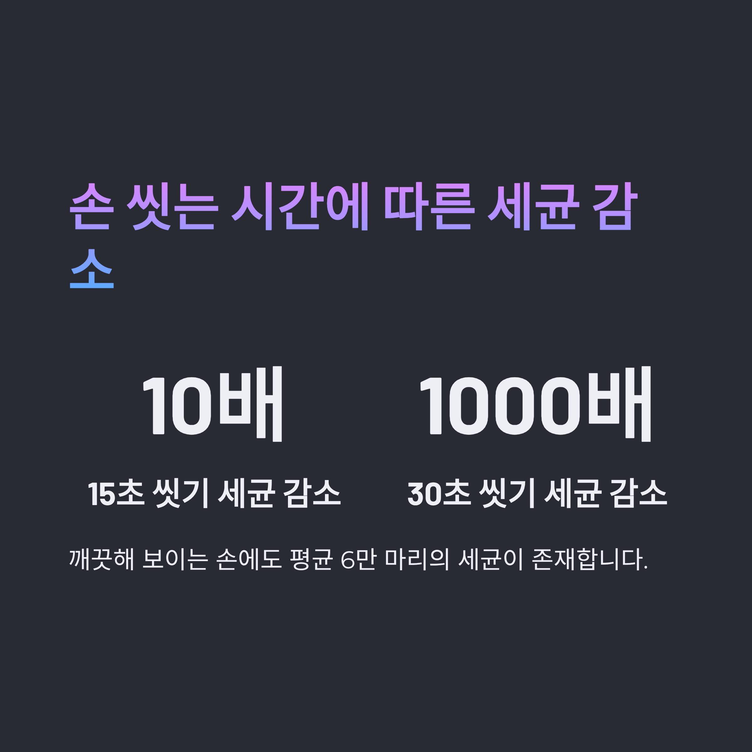 | 15초 씻기 | 약 10배 감소 |