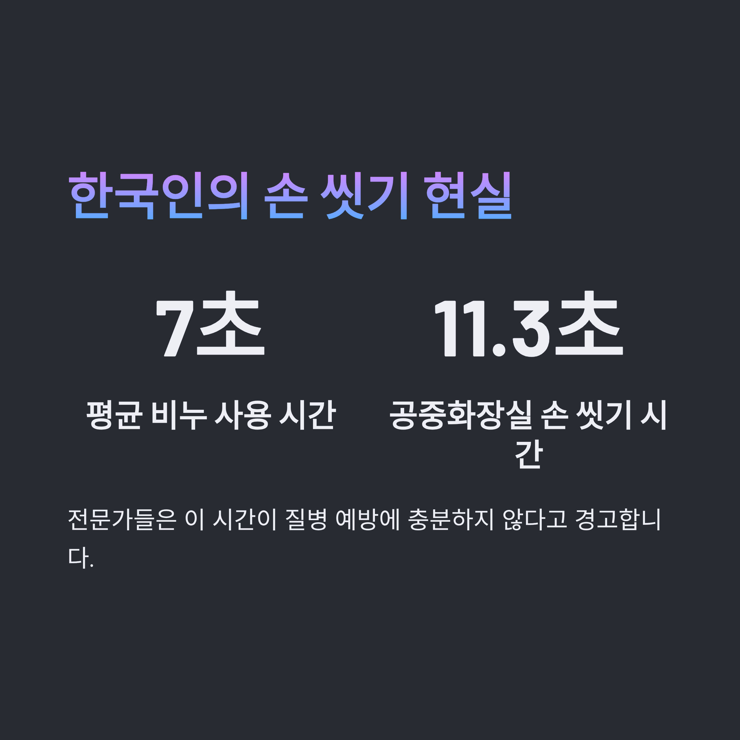 질병관리청의 2023년 조사에 따르면 한국인이 공중화장실에서 손을 씻는 평균 시간은 11.3초,