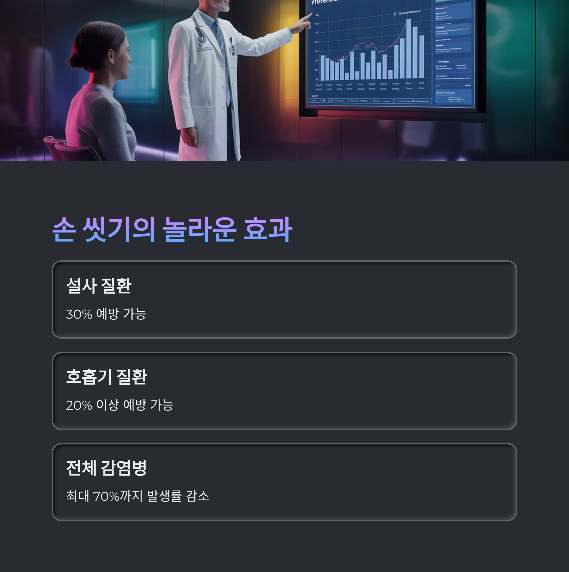 심지어 손 씻기 하나로 감염병 발생률이 70%까지 낮아질 수 있다는