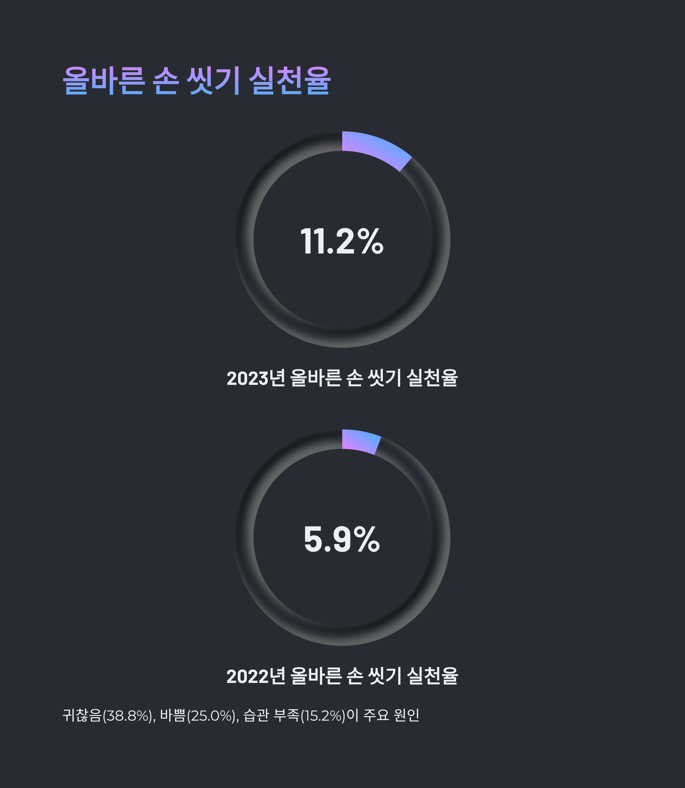 | 올바른 손 씻기 실천율 | 5.9% | 11.2% |