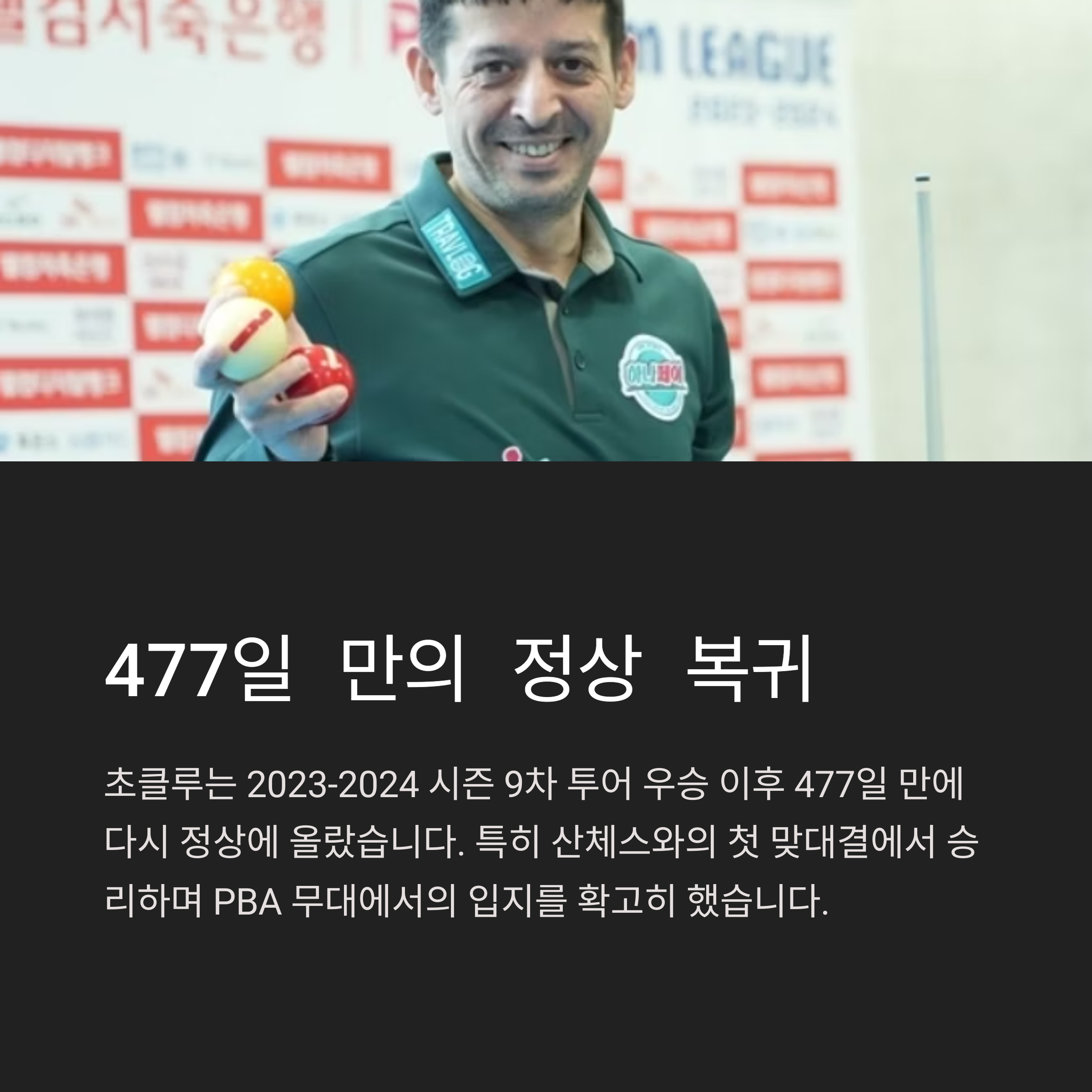 이번 우승은 초클루가 2023-2024 시즌 9차 투어 우승 이후 477일 만에 이뤄낸 성과로, PBA 무대에서의 입지를 다시 한 번 확고히 했습니다. 특히 산체스와의 첫 맞대결에서 승리하며 경쟁 구도 속에서 새로운 강자로 떠올랐다는 점에서 더 의미 있는 기록입니다.