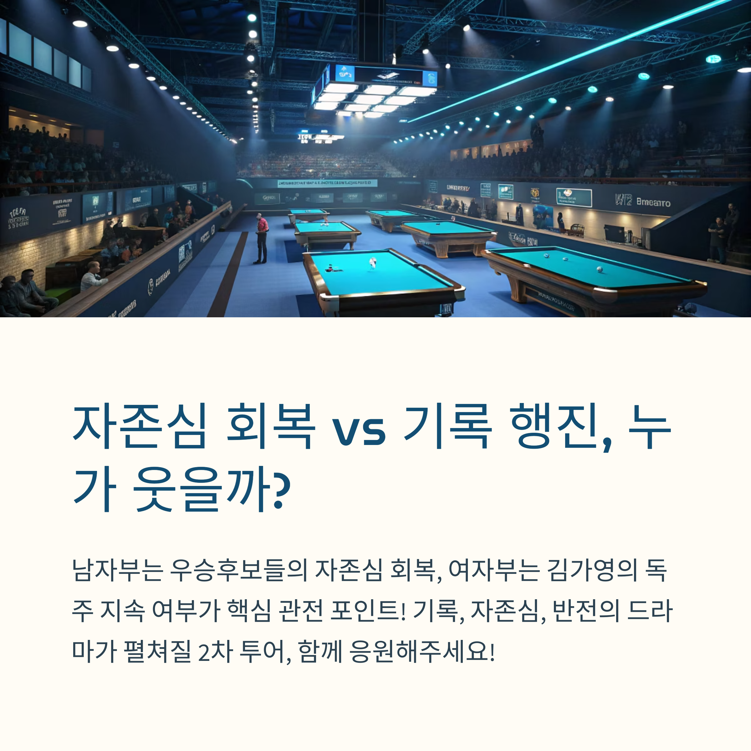| 여자부 | 김가영 독주 체제 | 도전자들의 반격, 우승 연승 저지 가능성 |