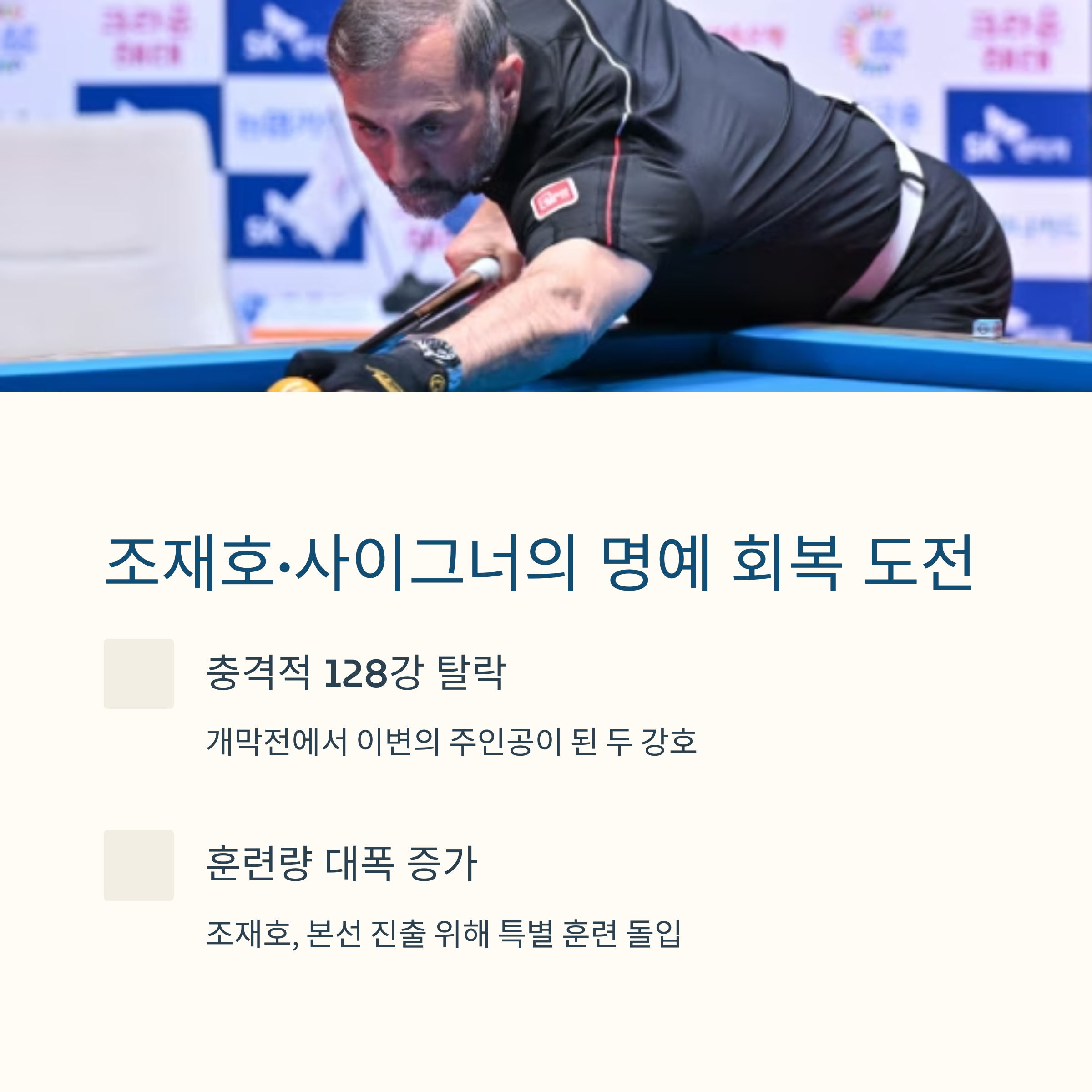 | 남자부 | 강호들의 조기 탈락 | 조재호·사이그너 등 명예 회복 여부 |