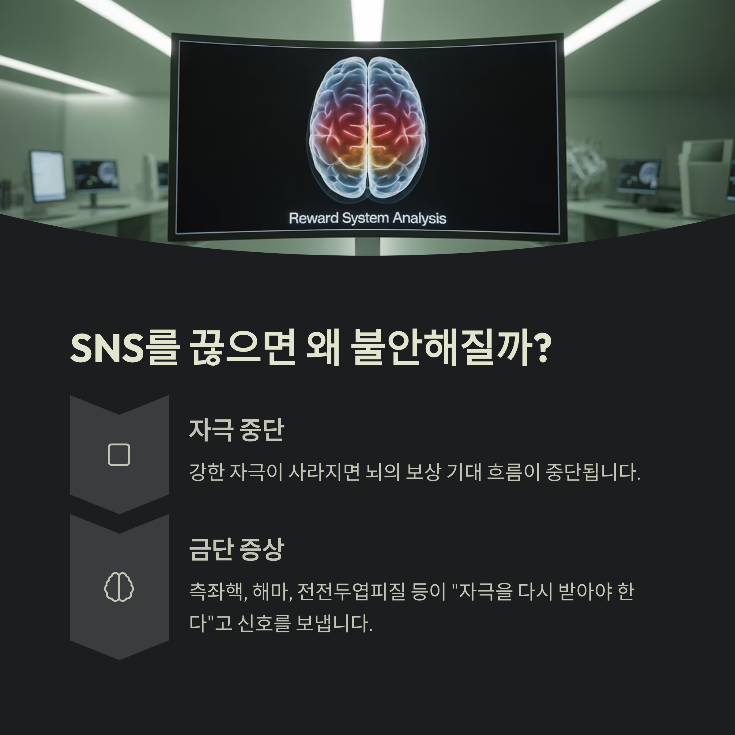 도파민 중독 상태에서는 강한 자극이 사라지면 뇌가 보상을 기대하던 흐름이