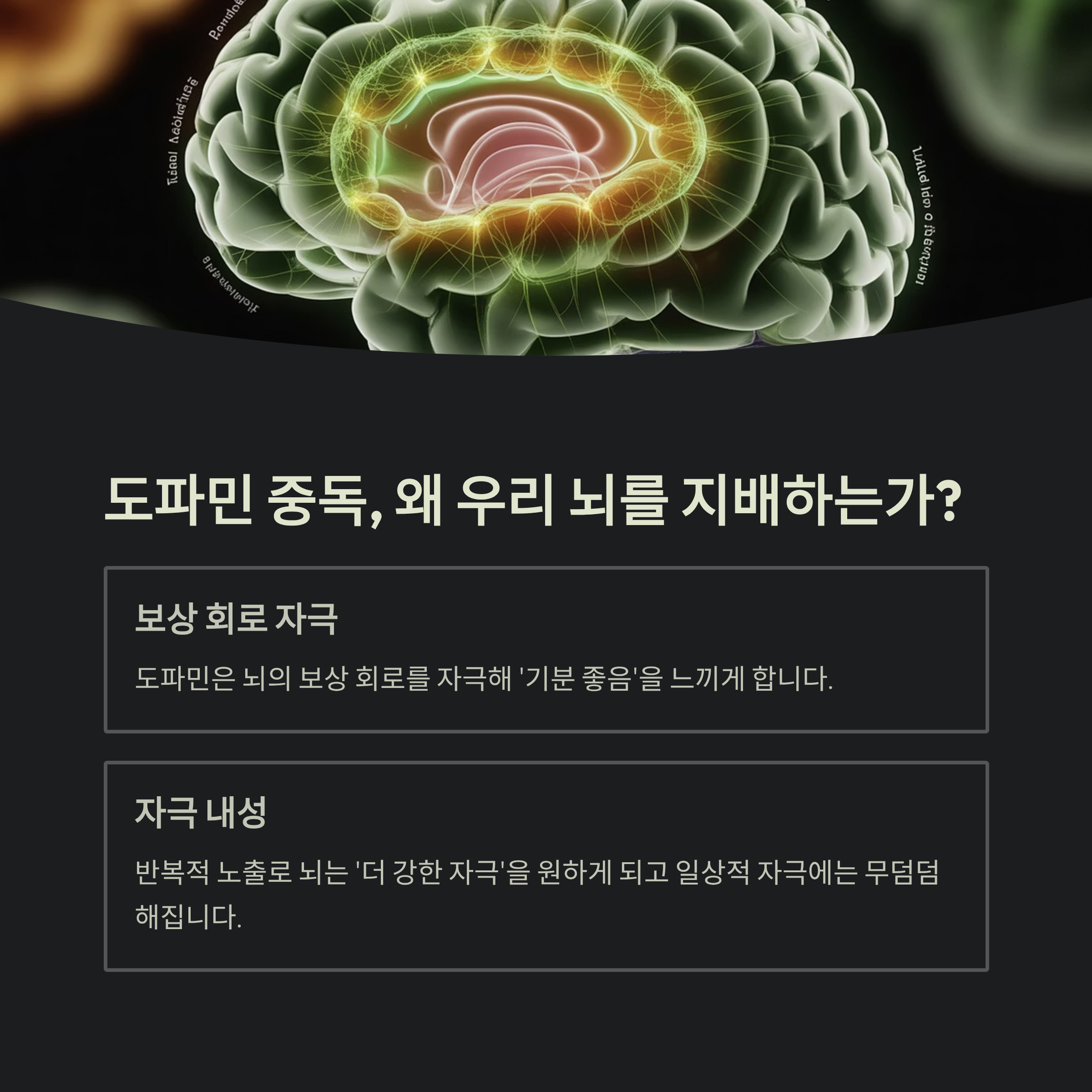 뇌는 도파민 분비에 점점 익숙해지며 ‘더 강한 자극’을 원하게 됩니다.