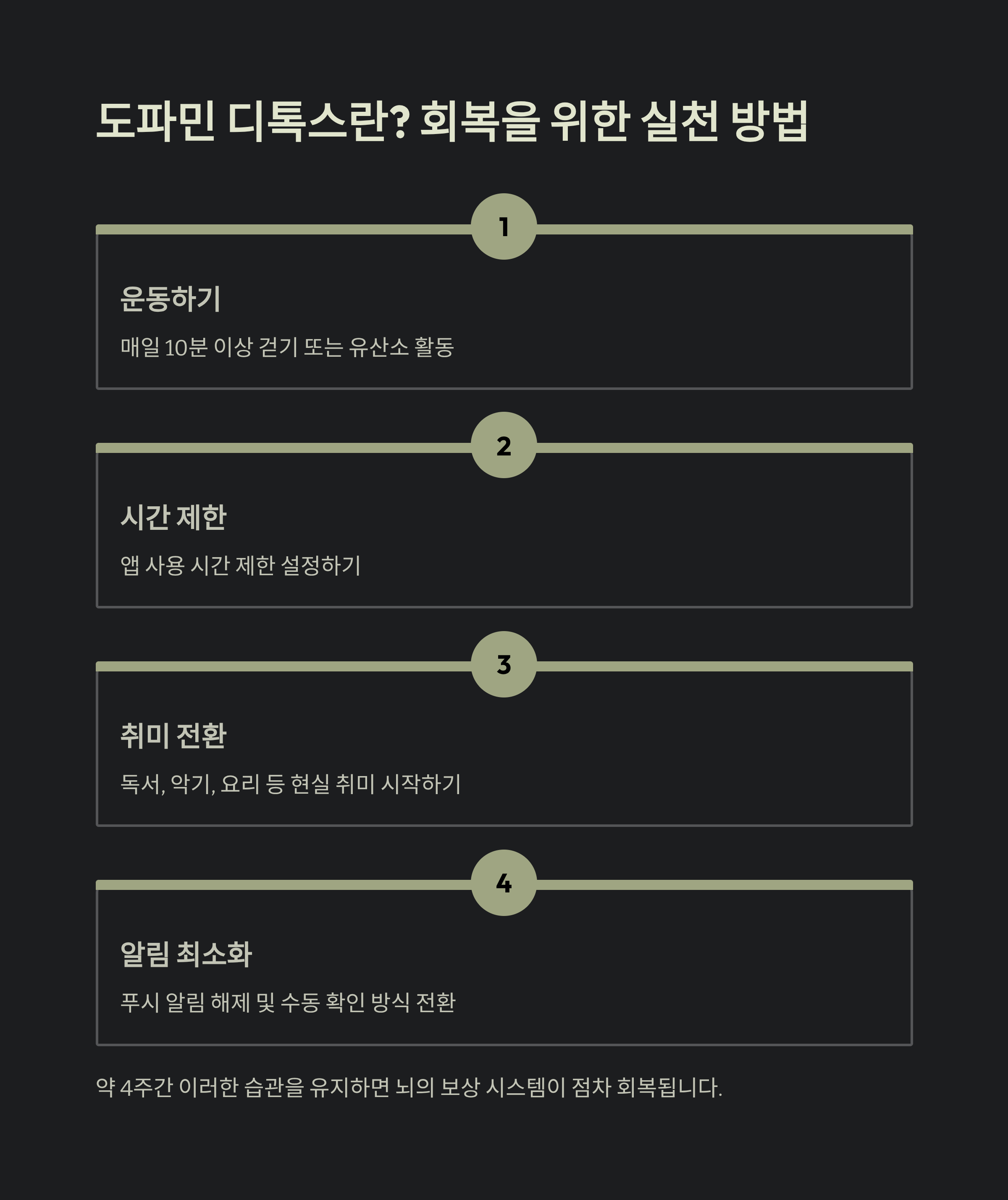 전문가들은 ‘도파민 디톡스’를 통해 점진적으로 중독에서 벗어날 수 있다고 조언합니다.